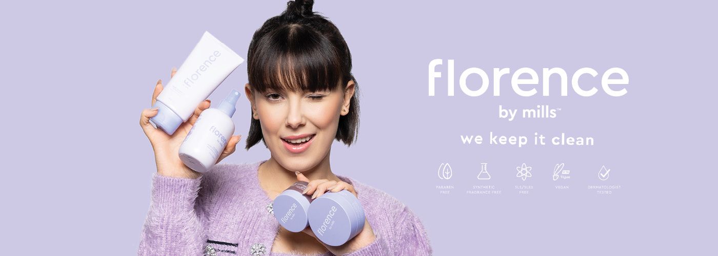 Florence by Mills er grundlagt af Millie Bobby Brown - måske du kender hende? Hvis ikke på navn, så sandsynligvis på billede. Brandet er designet til at passe til alle hudtyper og fokuserer på at skabe produkter, der giver en naturlig glød og får dig til at føle dig godt tilpas i din egen hud. Serien rummer alt fra hudpleje til makeup og giver dig mulighed for at skabe et naturligt og friskt look