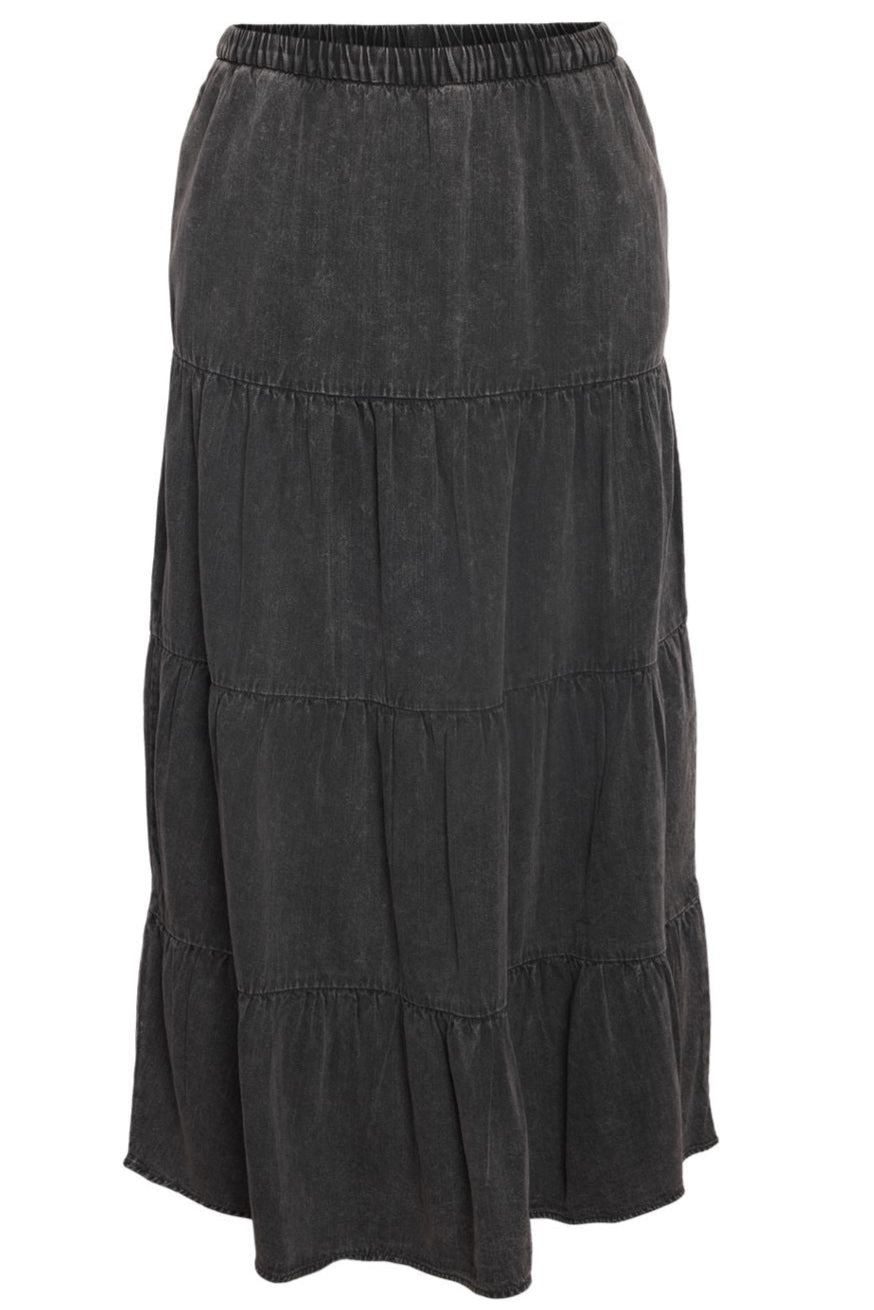Lang denim nederdel: En lang denimnederdel er ideel til at skabe et afslappet, boheme look. Den kan parres med alt fra t-shirts til strik, og du kan tilføje et par smukke loafers eller ballerianer.