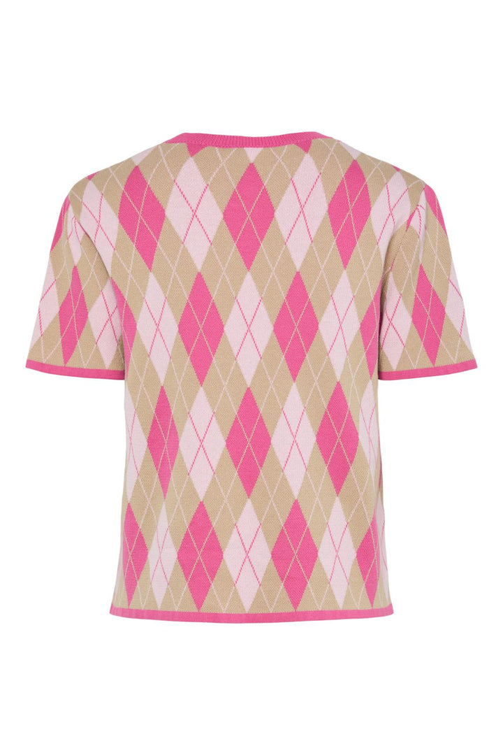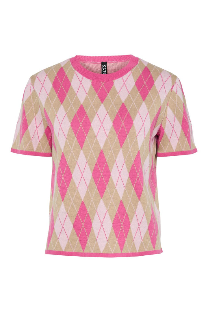 Pieces - Pcfarley Ss O-Neck Knit Fsy - 4946580 Pink Tulle Fuchsia Pink/Whitecap Gray