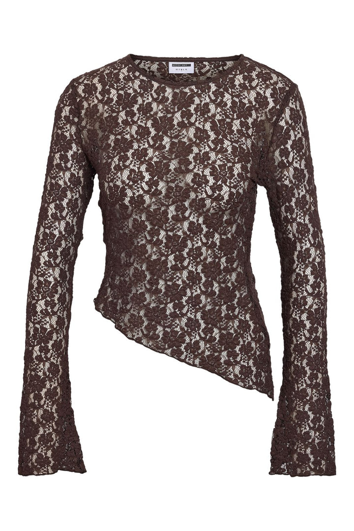Noisy May - Nminferno Short Satin Lace Skirt - 5069236 Chocolate Brown Black Lace
