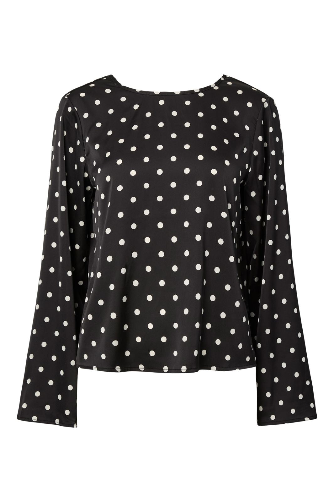 Bluser og toppe med polkaprikker findes i mange forskellige designs, både med løstsiddende modeller med feminine flæsedetaljer og mere enkle snit. Mange er lavet af lette materialer som viskose, lyocell og polyamid, ofte med en krøllet tekstur. Flere har detaljer som høje kraver med rynker, V-udskæringer og rynkede manchetter. V-udskæringen forlænger halsen visuelt, mens de rynkede manchetter tilføjer volumen ved håndleddene.