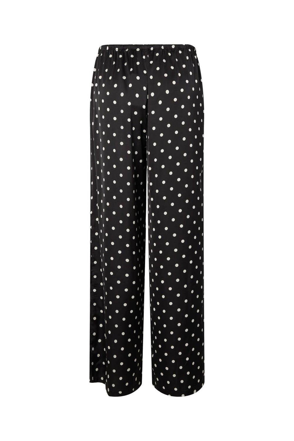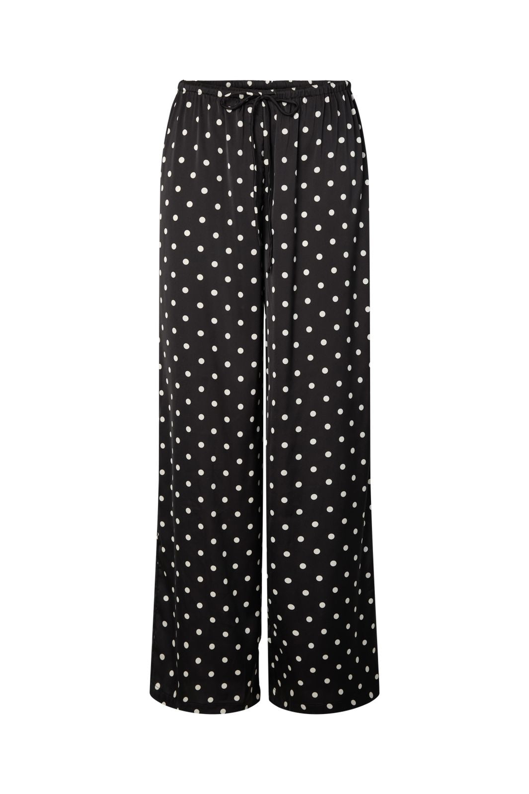 - Kombiner store prikker med enkle, strukturerede snit i neutrale farver som navy, sort eller beige for at skabe balance mellem mønster og form.