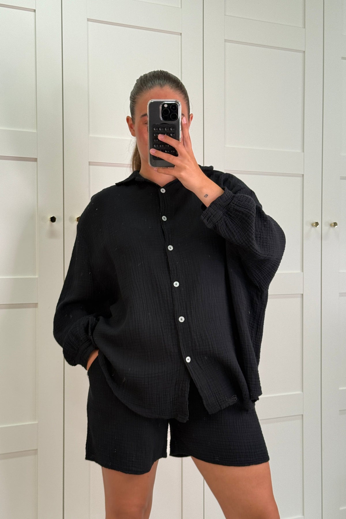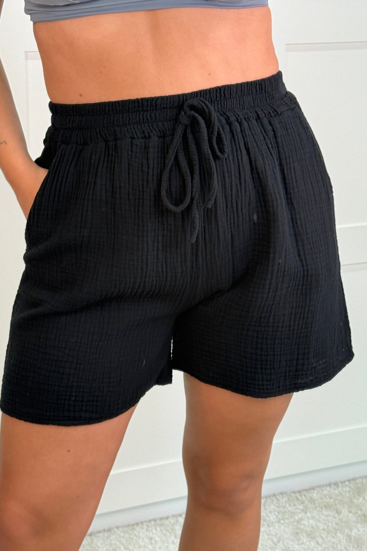 Sorte højtaljede shorts fra A-bee. Lavet i bomuld med bindebånd i taljen. Shortsene har en løs pasform og en klassisk ensfarvet stil.