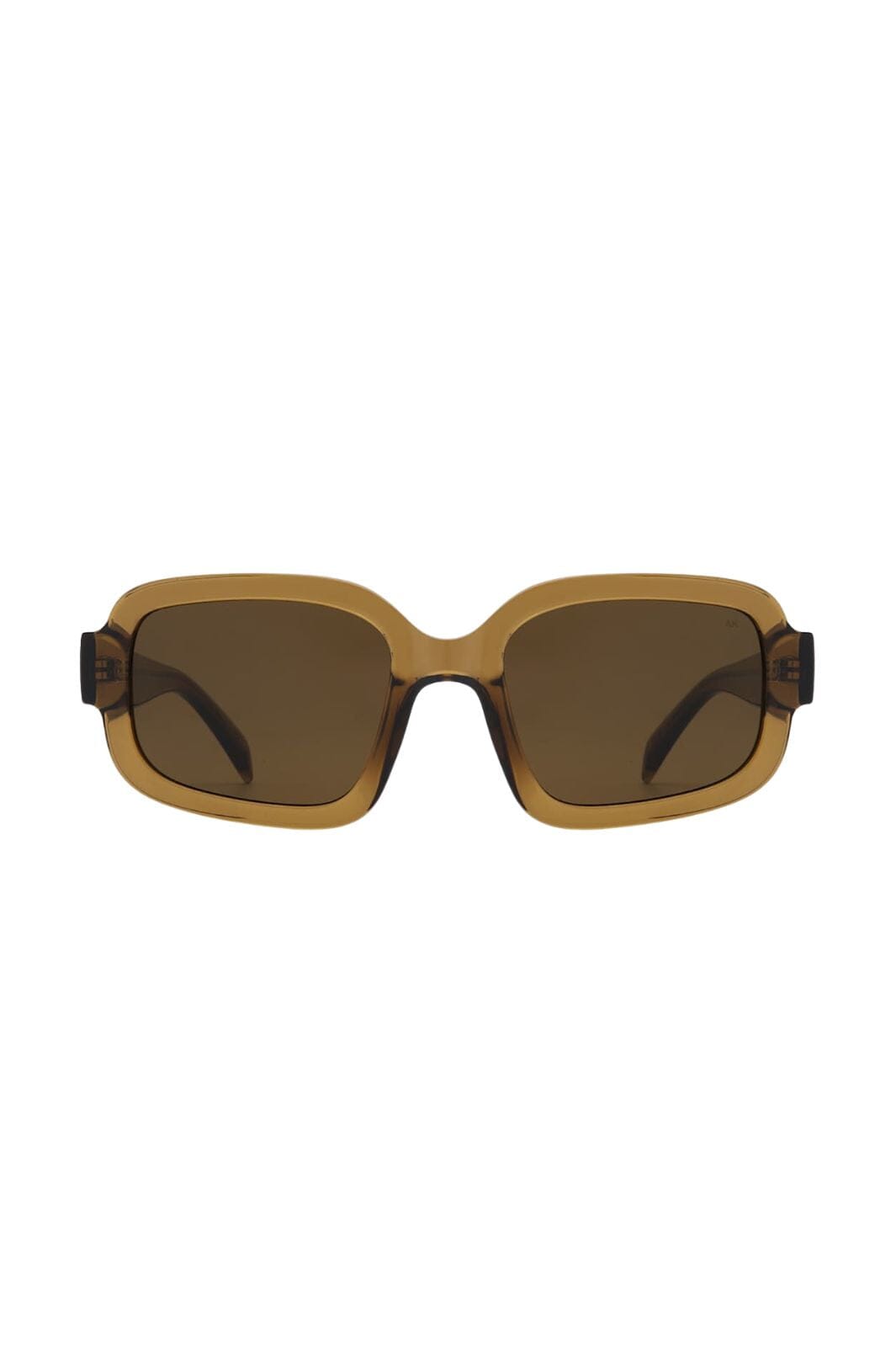 Oversized solbriller fra A. Kjærbede med kraftig ramme i transparent brun. Solbrillerne har en rektangulær form med bløde kurver og tonede glas, der giver god beskyttelse mod solen.