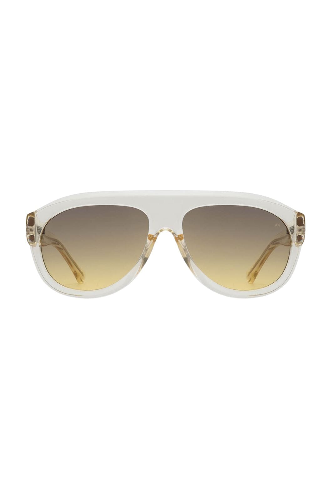 Solbriller fra A. Kjærbede i gennemsigtig ecru. Aviator-designet har en skulptureret ramme med graduerede linser, der er mørkere øverst og lysere nederst.