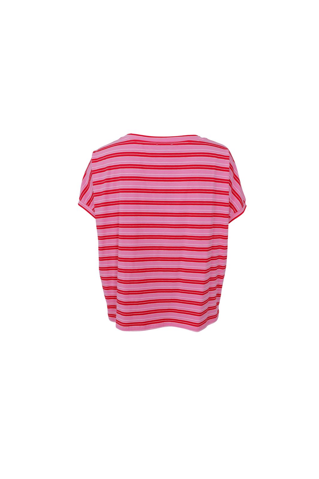 Løs bluse fra Black Colour, lavet af 95 % bomuld og 5 % elastan. Blusen har vandrette striber i pink og rød.