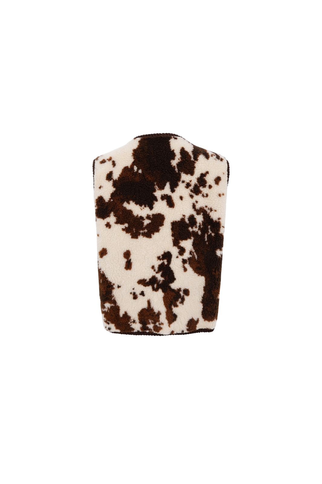 Vest fra Black Colour i brunt og cremefarvet dyreprint. Vesten er lavet af polyester og har en ærmeløs stil med knaplukning.