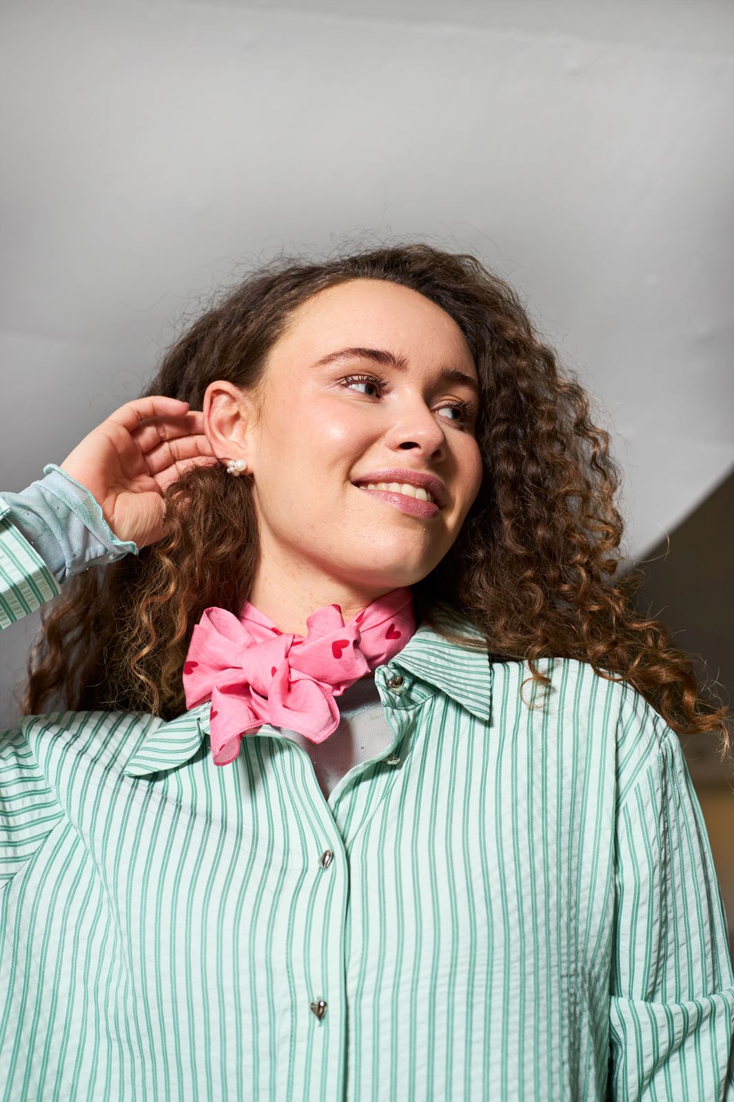 Stribet skjorte fra Black Colour i lysegrøn med hvide striber. Skjorten har klassisk krave, knaplukning foran og lange ærmer.