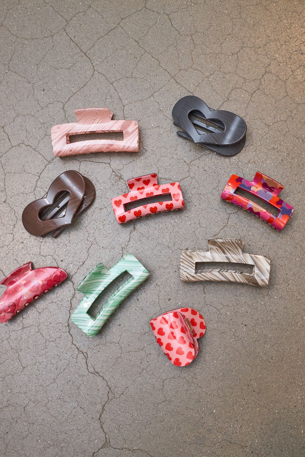 Hårklemme fra Black Colour, lavet af 100 % akryl i en kaffebrun nuance. Hårklemmen har et hjerteformet design med en udskæring i midten.