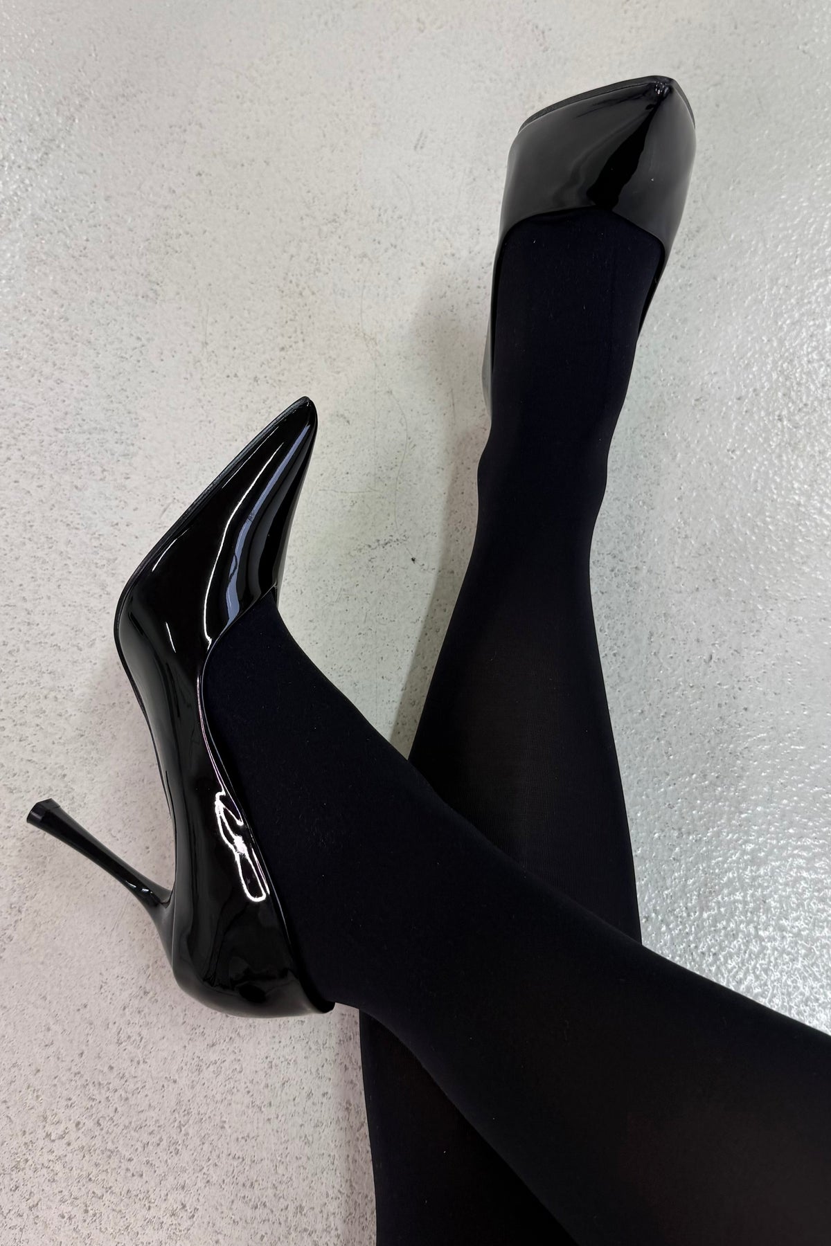 Sort stilet fra Bloom, lavet til både fest og formelle lejligheder. Skoen har en stilethæl og en firkantet tå.