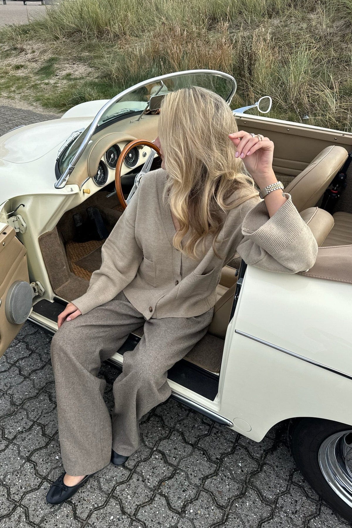 Bukser fra BYIC i brun melange. De har en bred benstil og høj talje med et skræddersyet design og blødt materiale.
