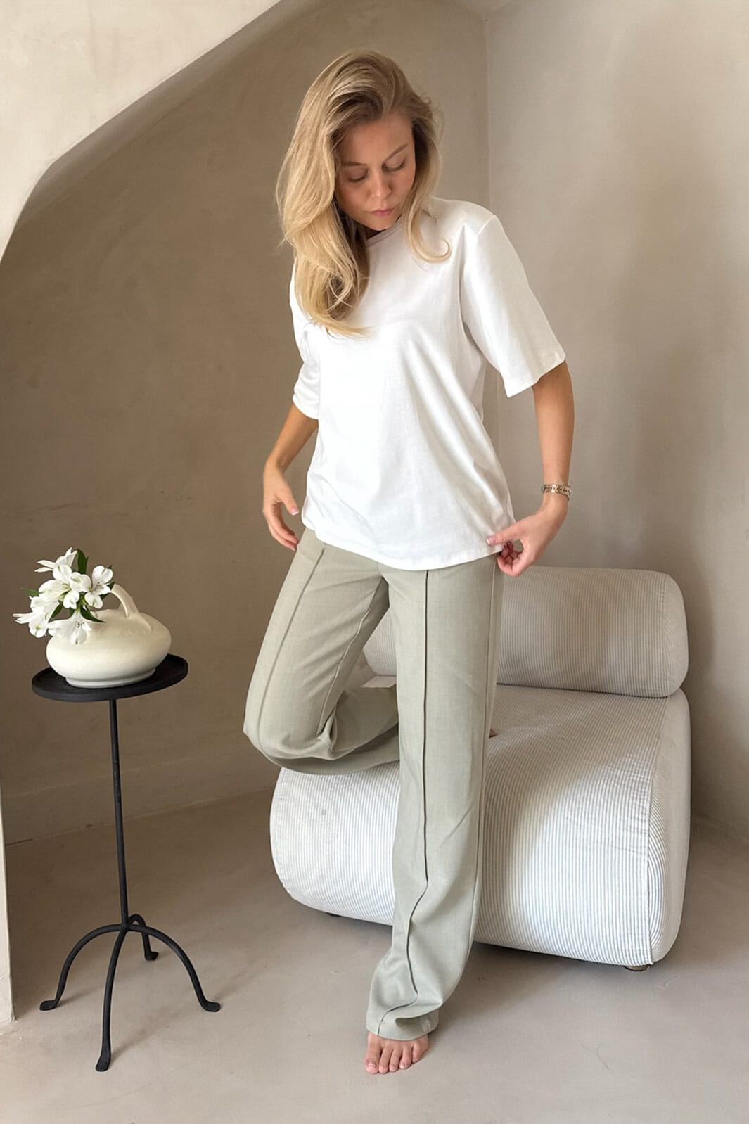 Hvid t-shirt fra BYIC med løs pasform og rund halsudskæring. T-shirten har korte ærmer og en afslappet silhuet, der passer til både motion og afslapning.