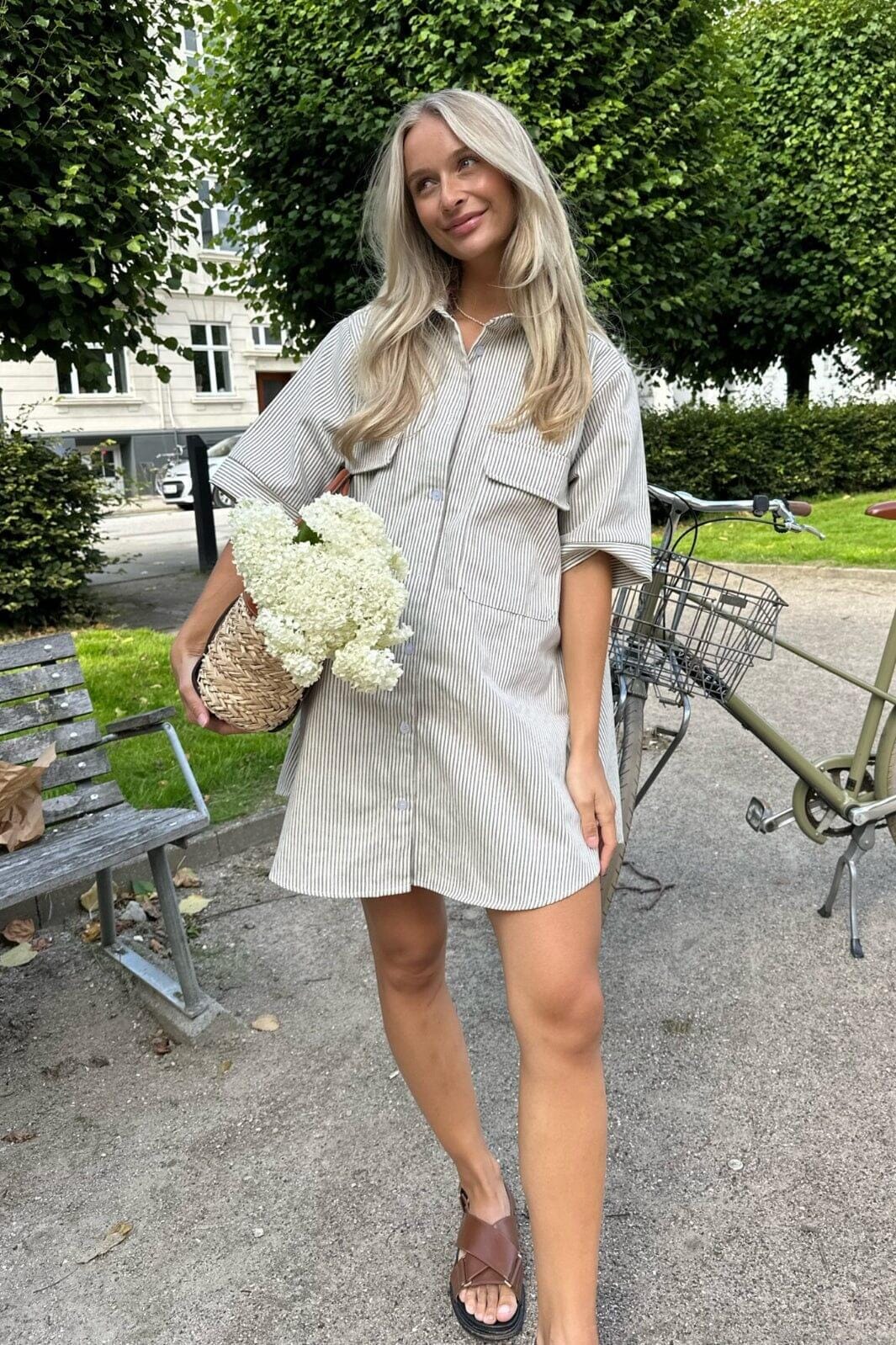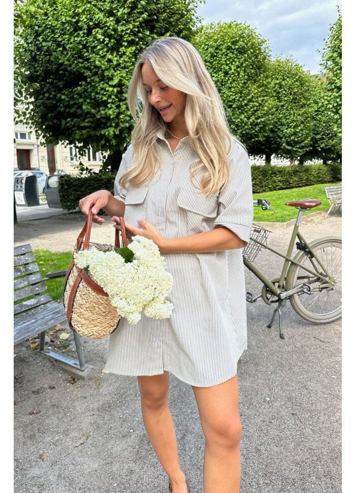 BYIC Selda Shirt Dress Farve: Dark Beige Woven Stripe