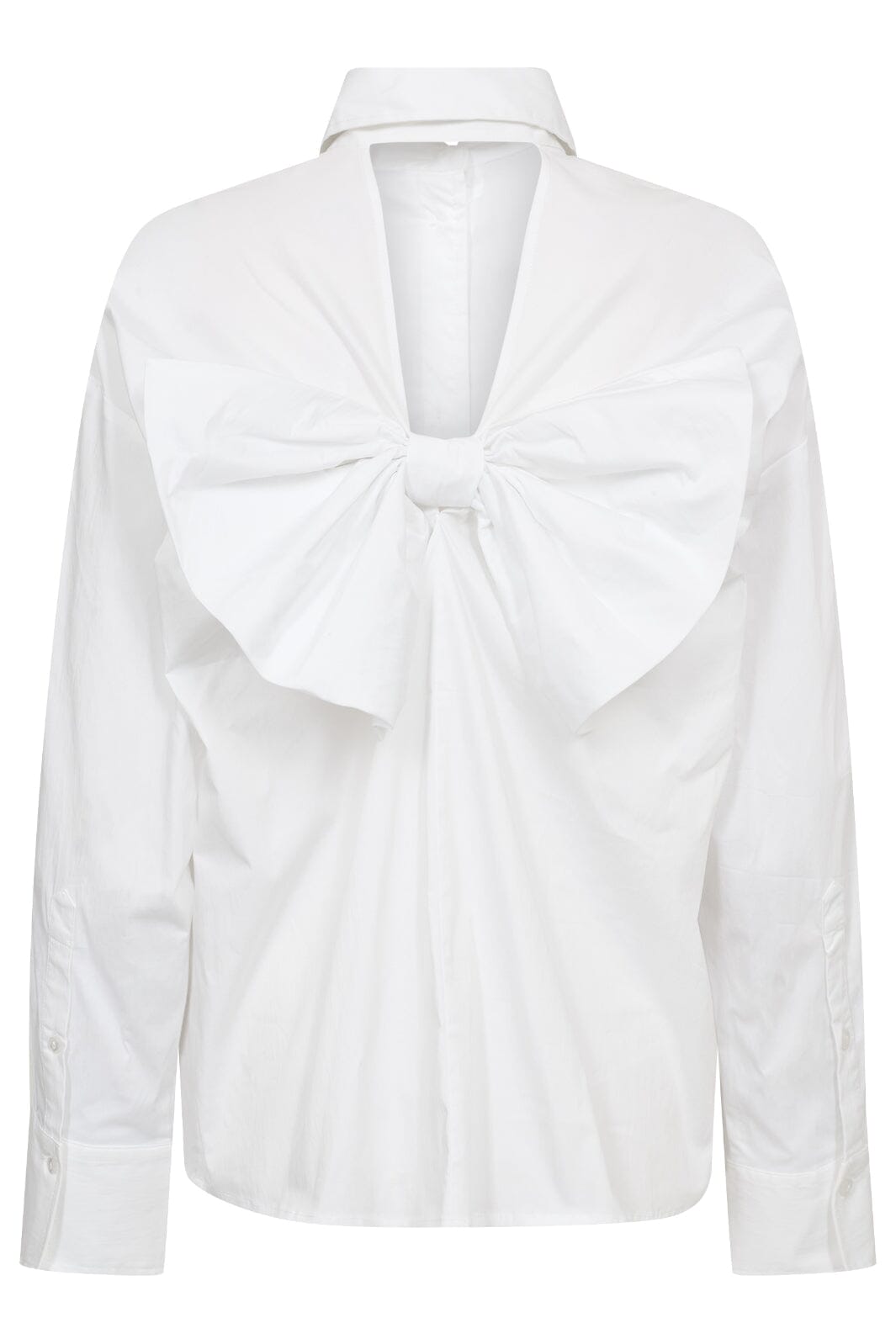 Hvid skjorte fra Co'Couture med en stor sløjfe på ryggen og åben ryg. Den kombinerer klassiske skjortedetaljer med et markant rygdesign.