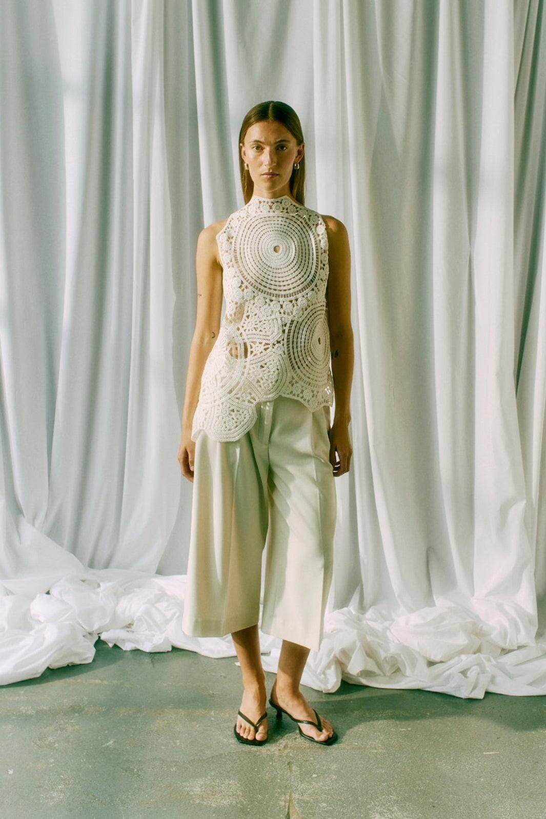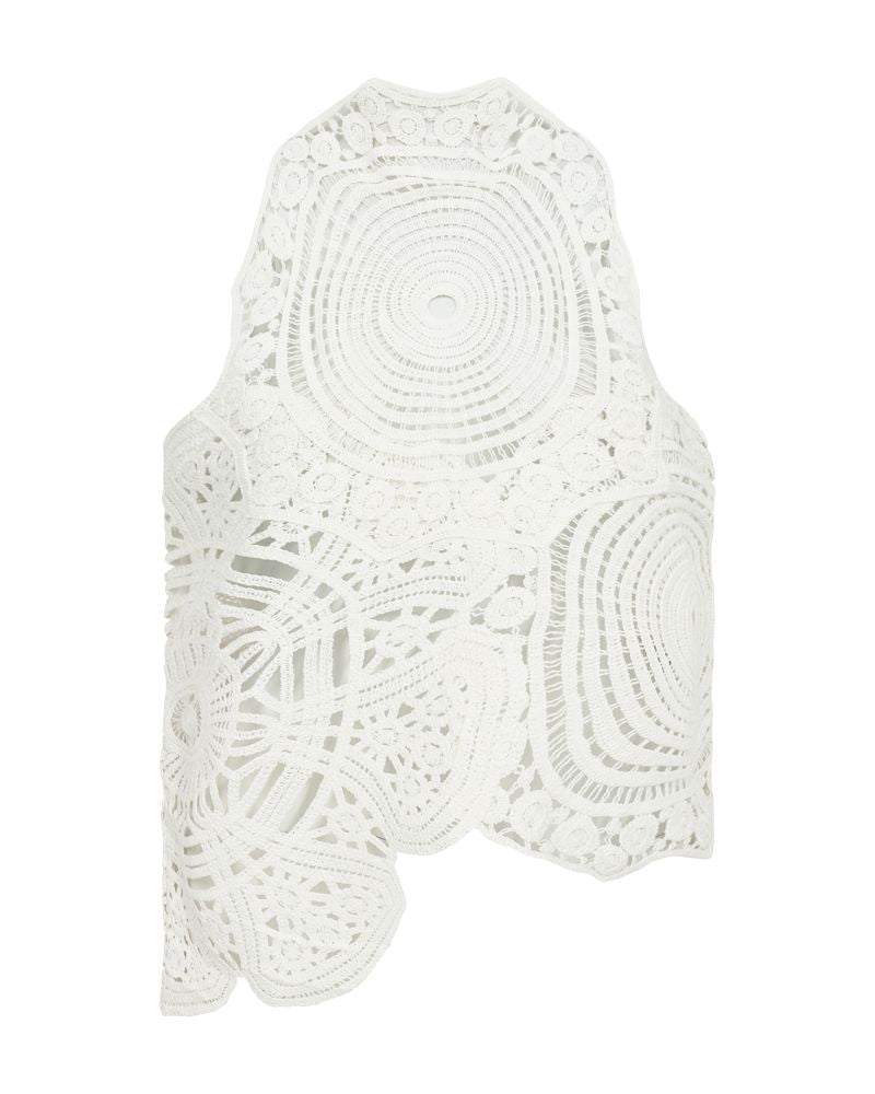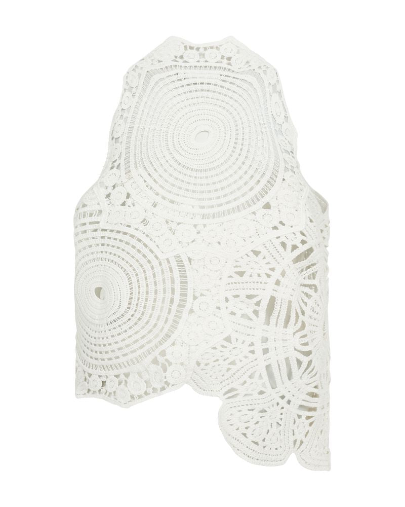 Ærmeløs top fra Copenhagen Muse i lys farve. Toppen er lavet af 100 % bomuld og har et detaljeret, cirkulært hæklet mønster.