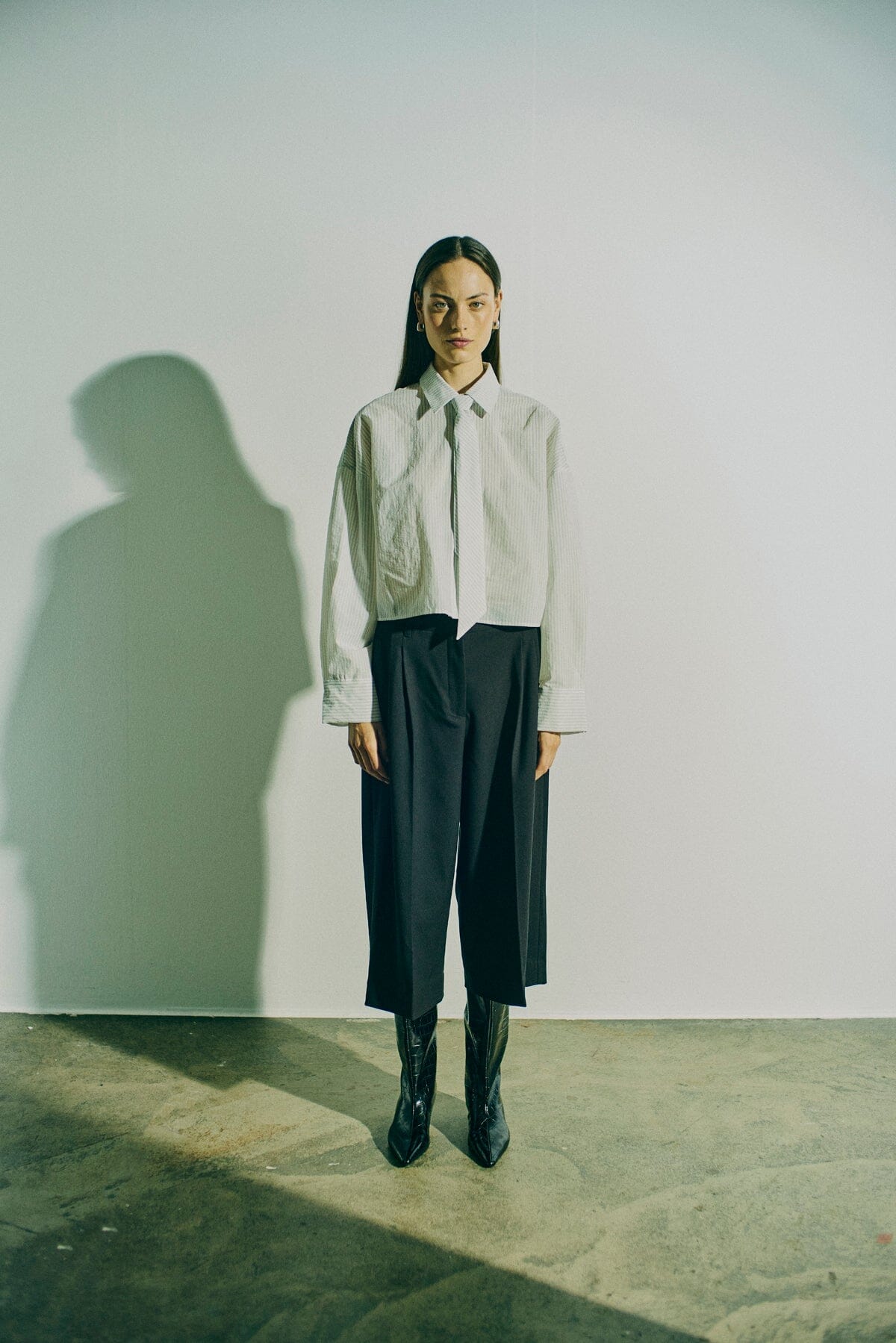 Stribet hvid skjorte fra Copenhagen Muse. Skjorten passer til både formelle og afslappede lejligheder med sin stribede kvalitet og matchende slips.