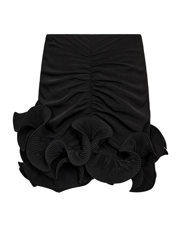 Sorte bukser fra Copenhagen Muse med høj talje og pressefolder. Bukserne har en lige pasform og går til midt på læggen med en smallere pasform ved anklerne.