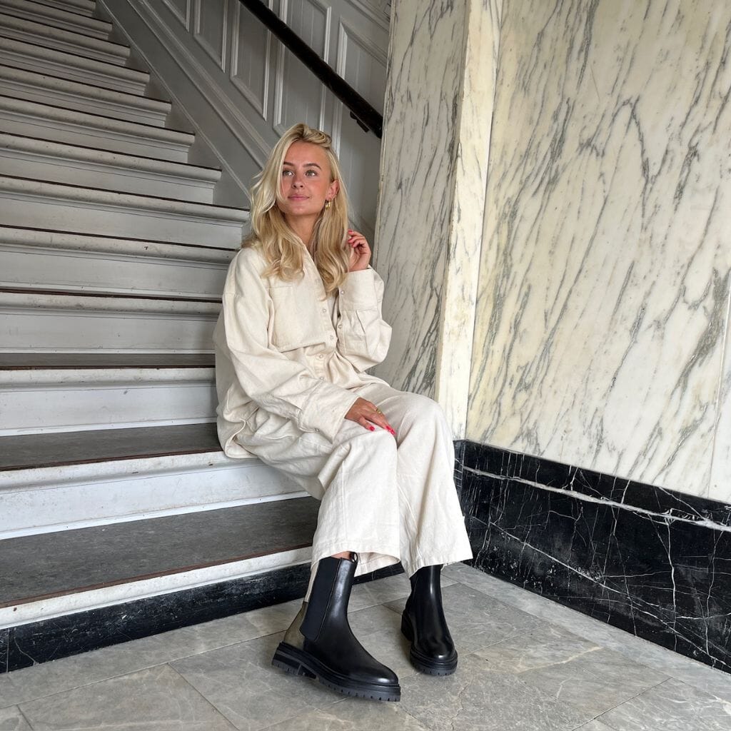 Smart sort støvle der er syet i det lækreste læder. Bagpå støvlen er der en kombination af flot army grøn og råhvide toner. Støvlen har lette og bløde gummisåler. indvendigt i støvlen er der et let og lunt fleece for.