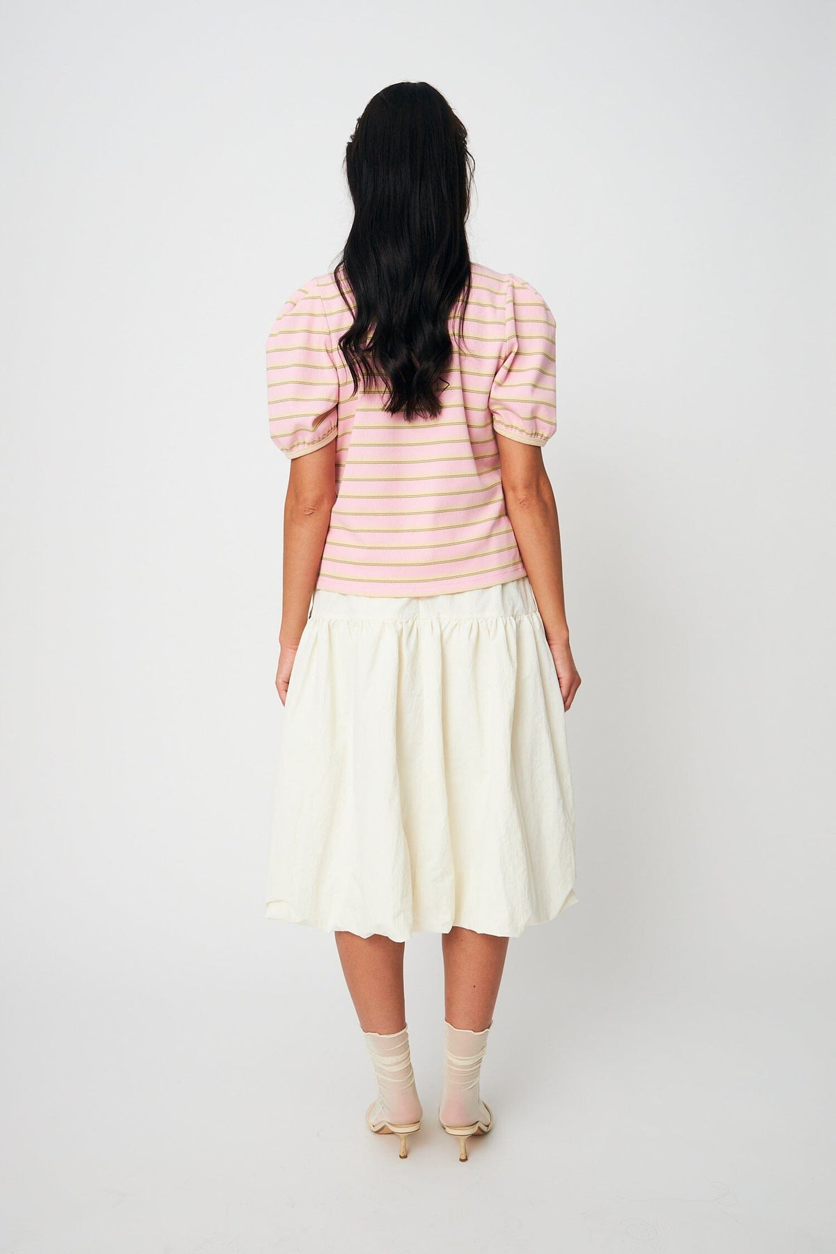 Stribet polo t-shirt fra Cras med lyserøde og gule striber. T-shirten har en lys krave med perleknapdetaljer og korte ærmer med slim fit-pasform.