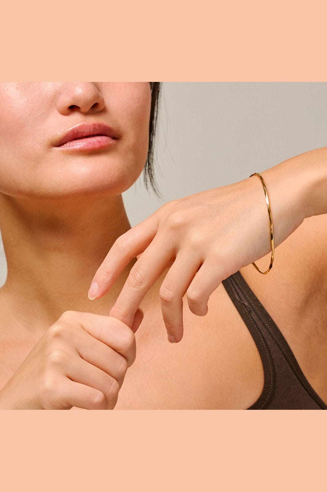 Gyldent armbånd fra Enamel Copenhagen med en organisk, bølget form. Armbåndet har en ultratynd profil og en skinnende, poleret overflade.