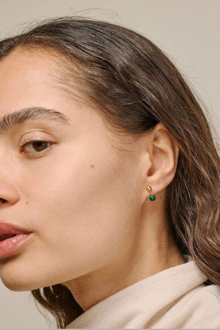 Guldbelagte øreringe fra Enamel Copenhagen med et bølget design. Smykket har en riflet overflade og er udført i mat finish med emaljedetaljer.