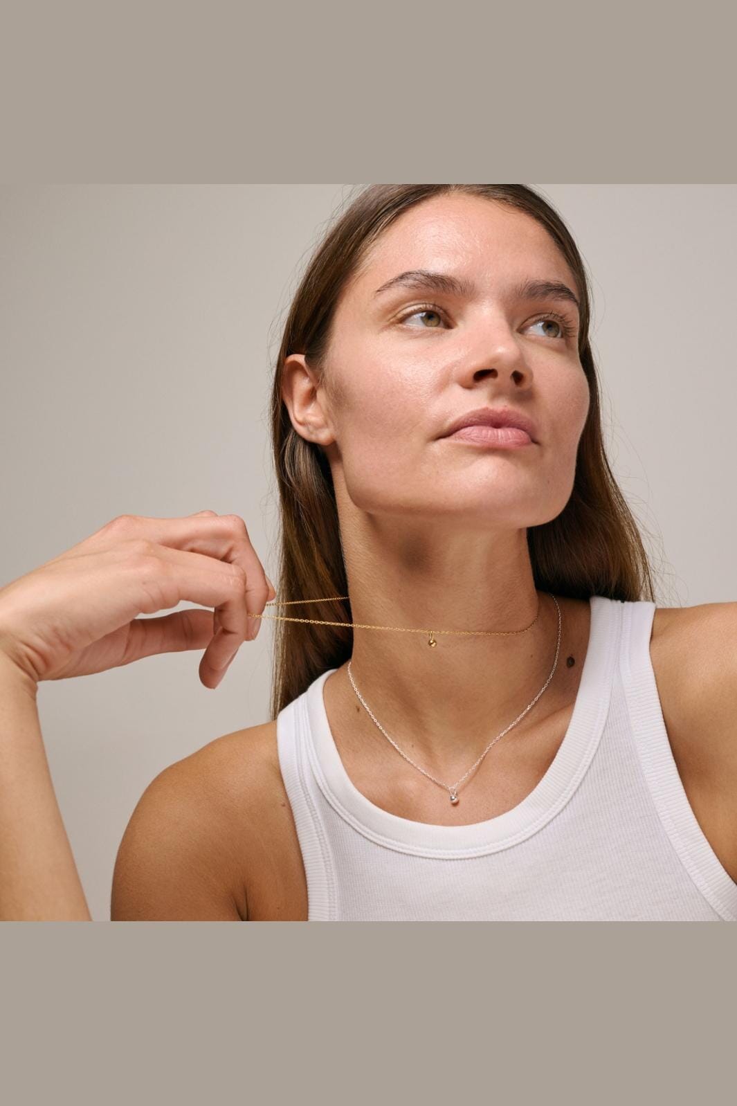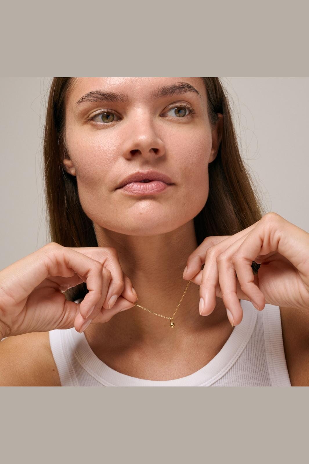 Guldbelagt halskæde fra Enamel Copenhagen med en fin kæde og et rundt vedhæng i ballonform. Den delikate kæde har et enkelt design med fokus på de rene linjer.
