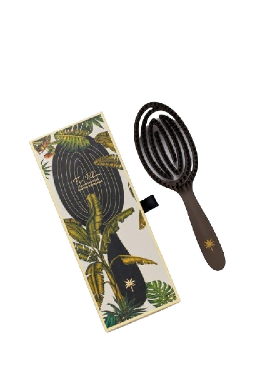 Hårbørste fra Fan Palm i varm grå. En børste, specielt designet til fint hår og extensions, med en kombination af vildsvinehår og nylonbørster for skånsom pleje.