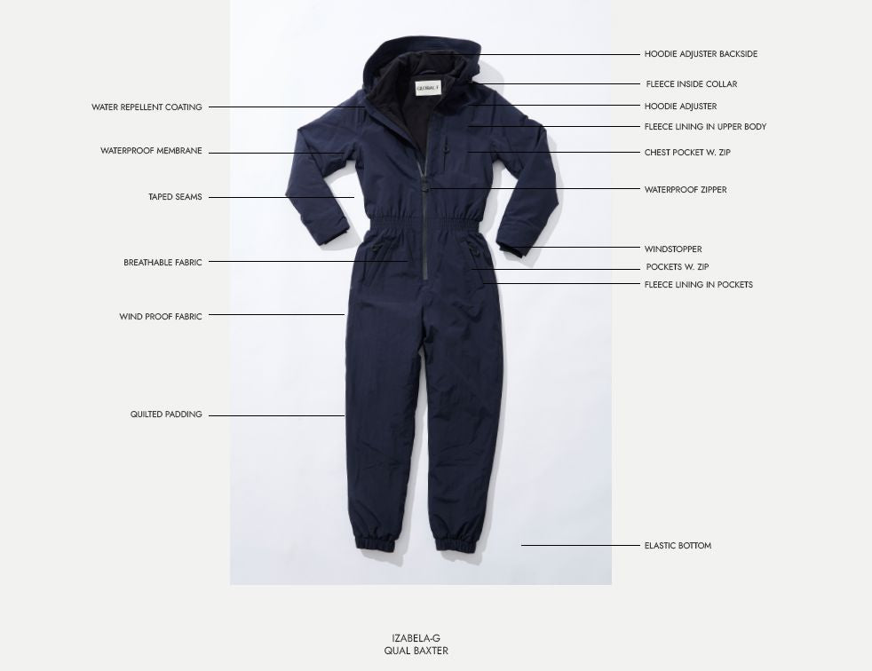 Lækker Army Global funk Izabela flyverdragt. Perfekt til vinter. Fleece foer i overkrop og hætten. Almindelig polyester fyld i arme og ben. Justering i taljen, åndbar og med ekstra lommer.
