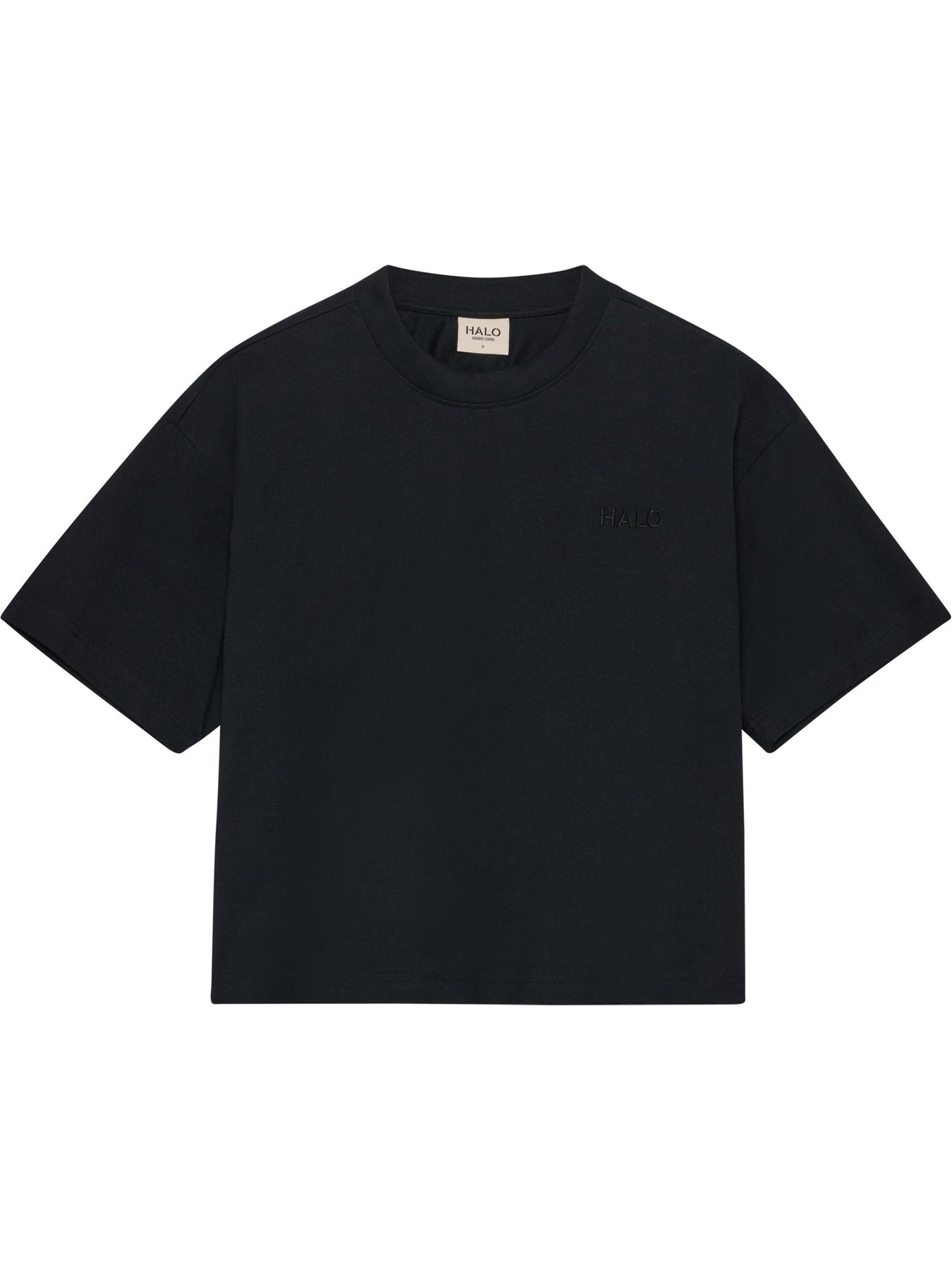 Sort t-shirt fra Halo, lavet af økologisk bomuld. T-shirten har et broderet logo og en løs pasform.