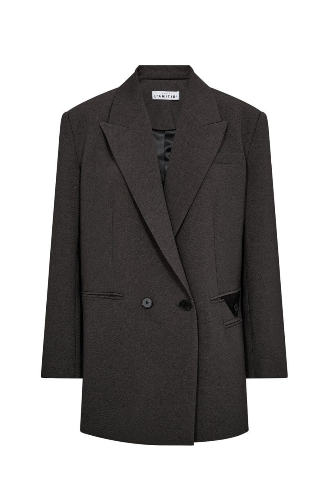 Oversize blazer fra Haute L'Amitié i mørkegrå. Blazeren har en dobbeltknappet front med to synlige knapper og brede revers.