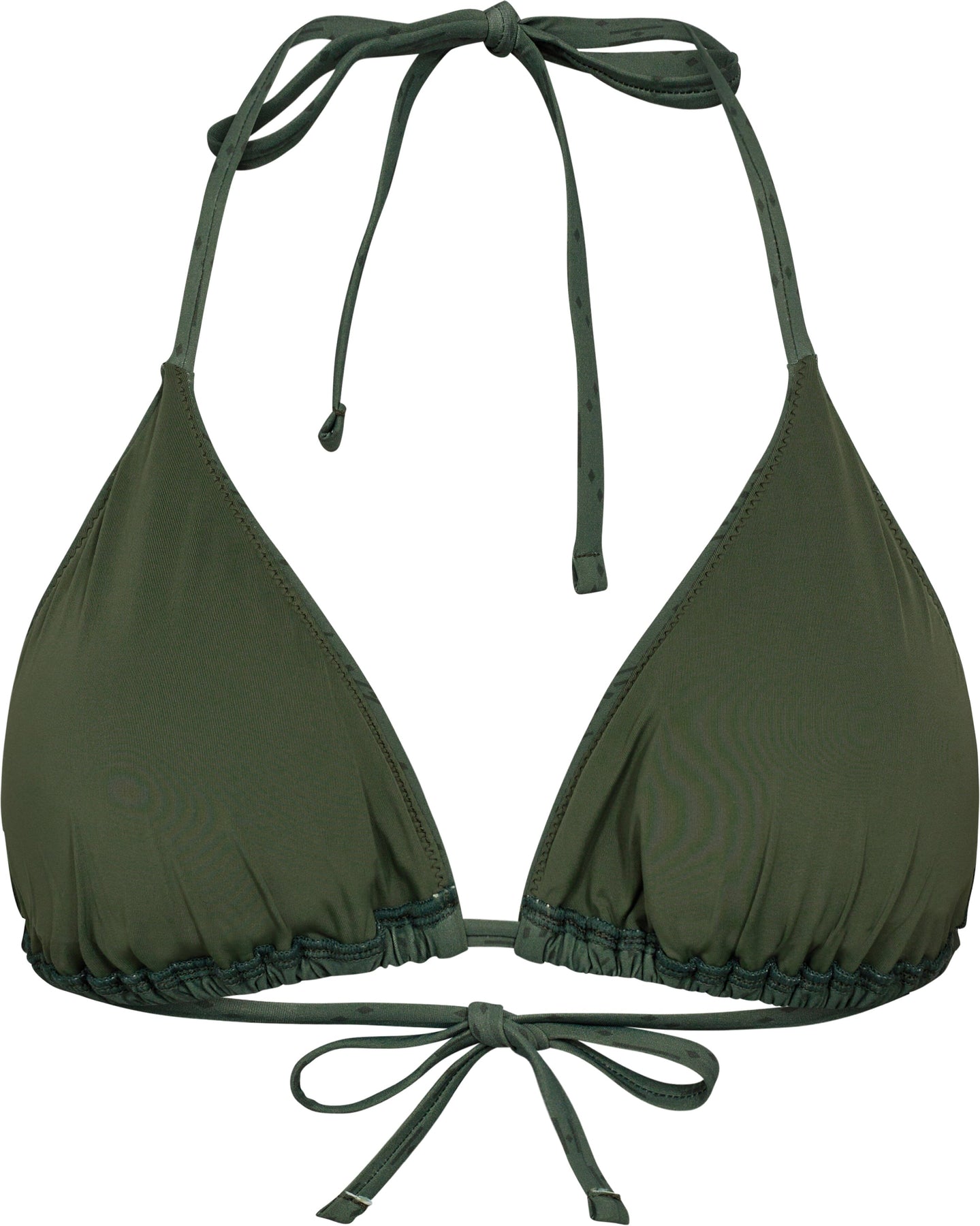 Trianglebikini fra Hype The Detail i grøn. Bikinien har et print og detaljer med flæser og bindebånd.