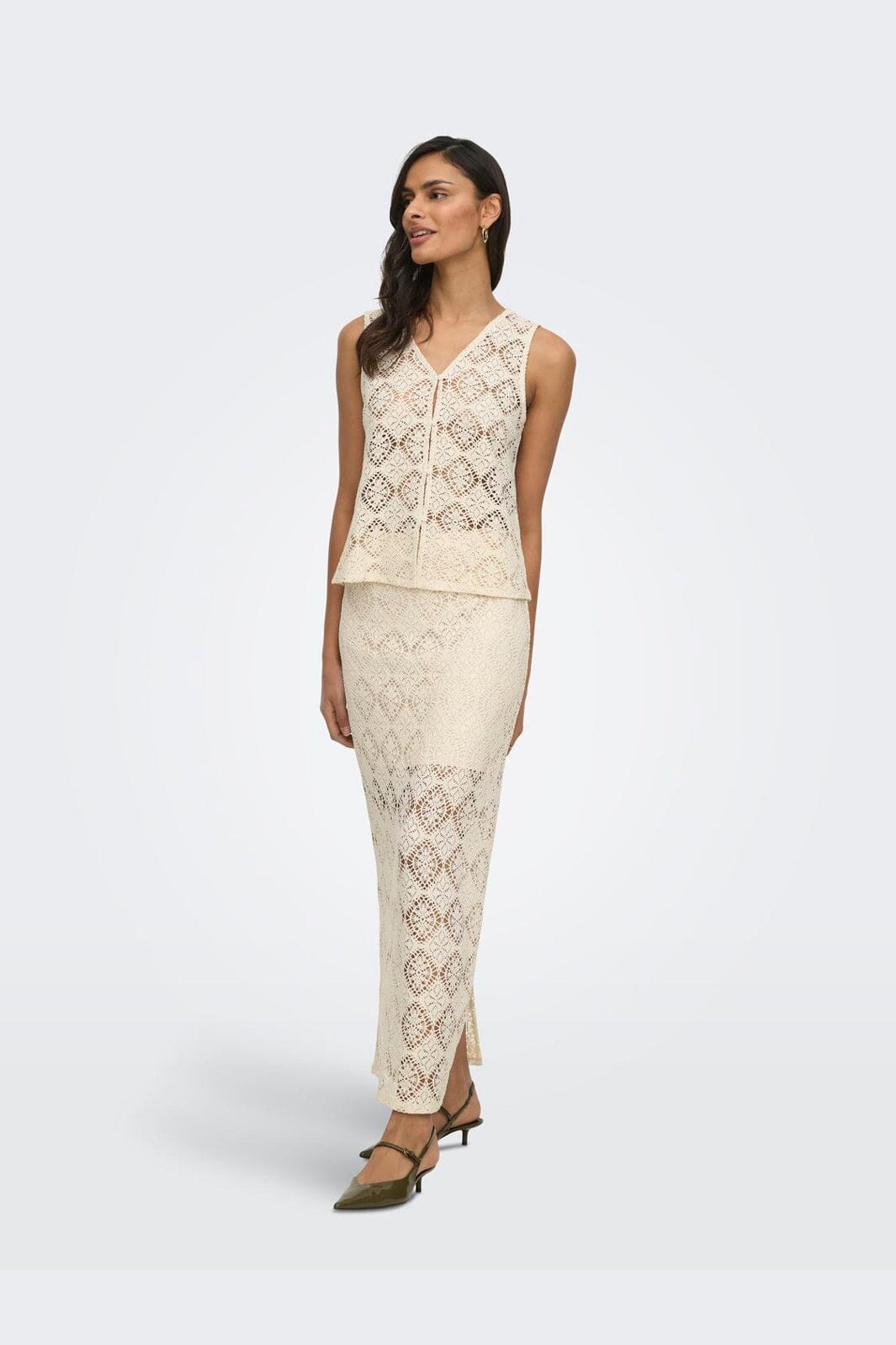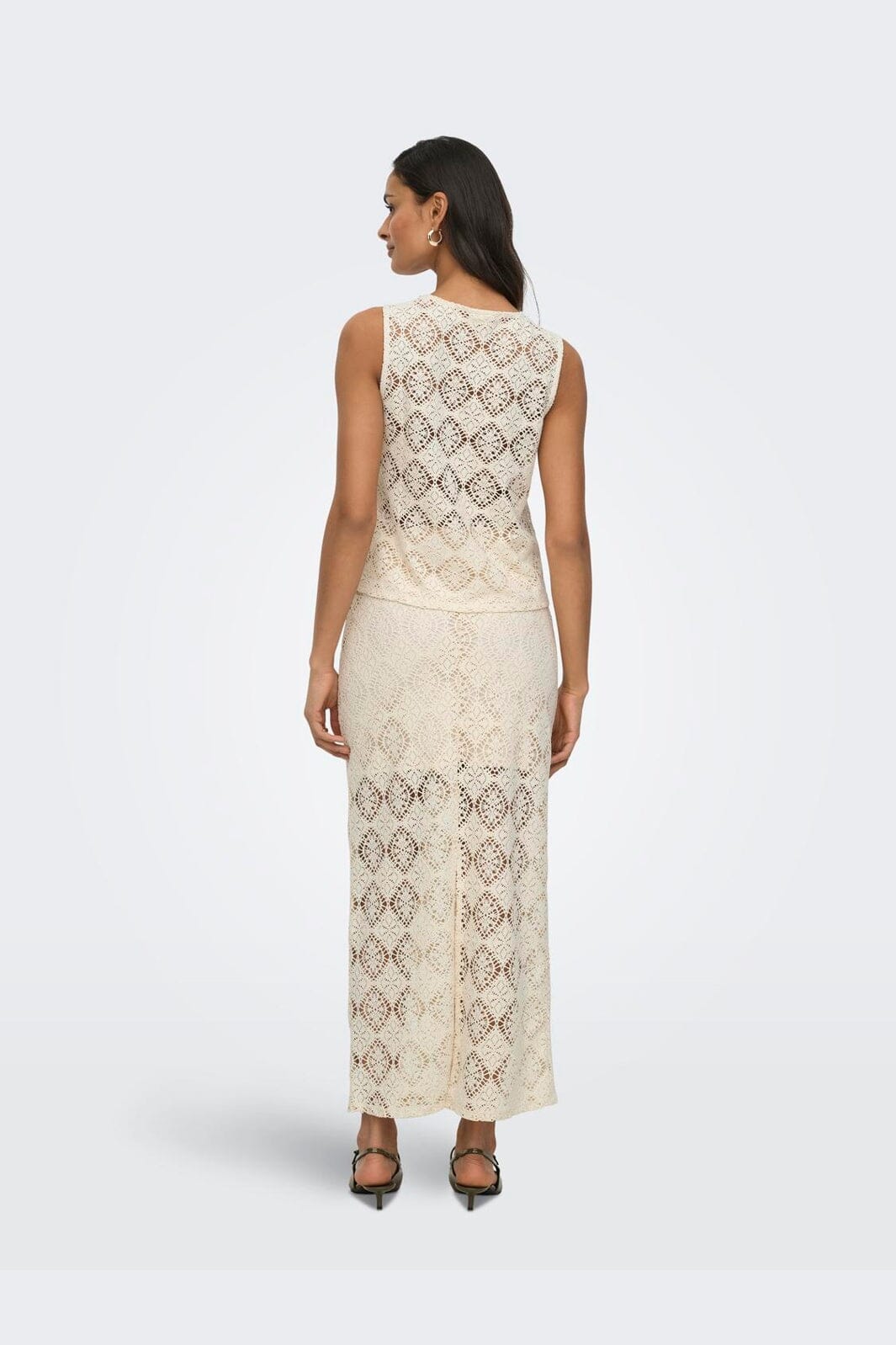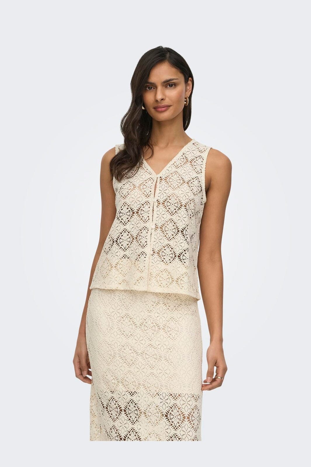 Ærmeløs top fra JDY i lys cremefarve med blonder-lignende mønster. Regular fit-pasformen giver en afslappet silhuet til hverdagen.