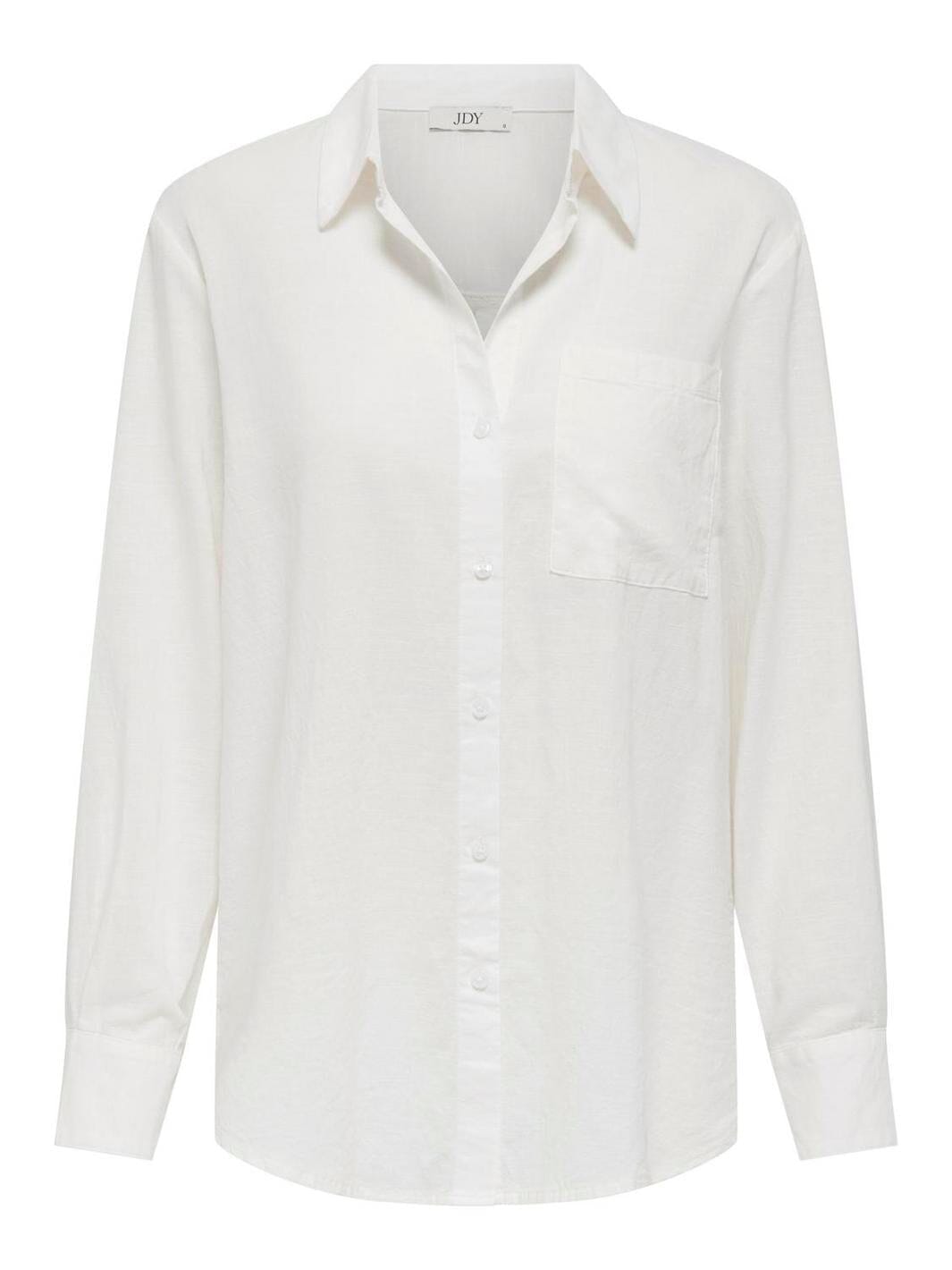 Hvid skjorte fra JDY i bomuldsmateriale. Skjorten har voluminøse ærmer med knaplukning ved manchetterne og en klassisk skjortekrave. En brystlomme på forsiden giver praktisk opbevaring.