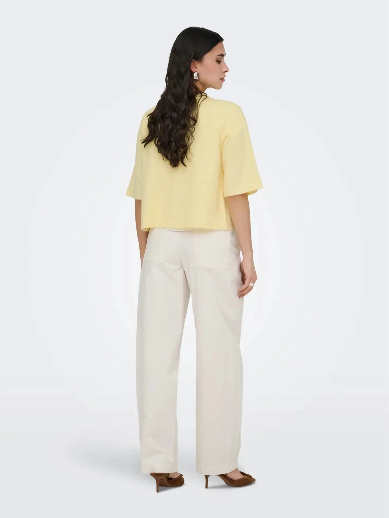 Cardigan fra JDY i en cremet gul nuance med dekorative sølvknapper. Cardiganen har 3/4-ærmer og en rund halsudskæring.