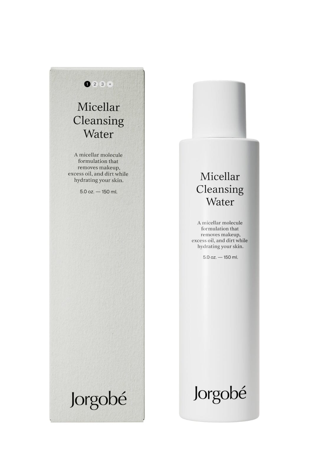 Micellært rensevand fra Jorgobé med hyaluronsyre. Et skånsomt renseprodukt, der fjerner makeup og urenheder fra huden.