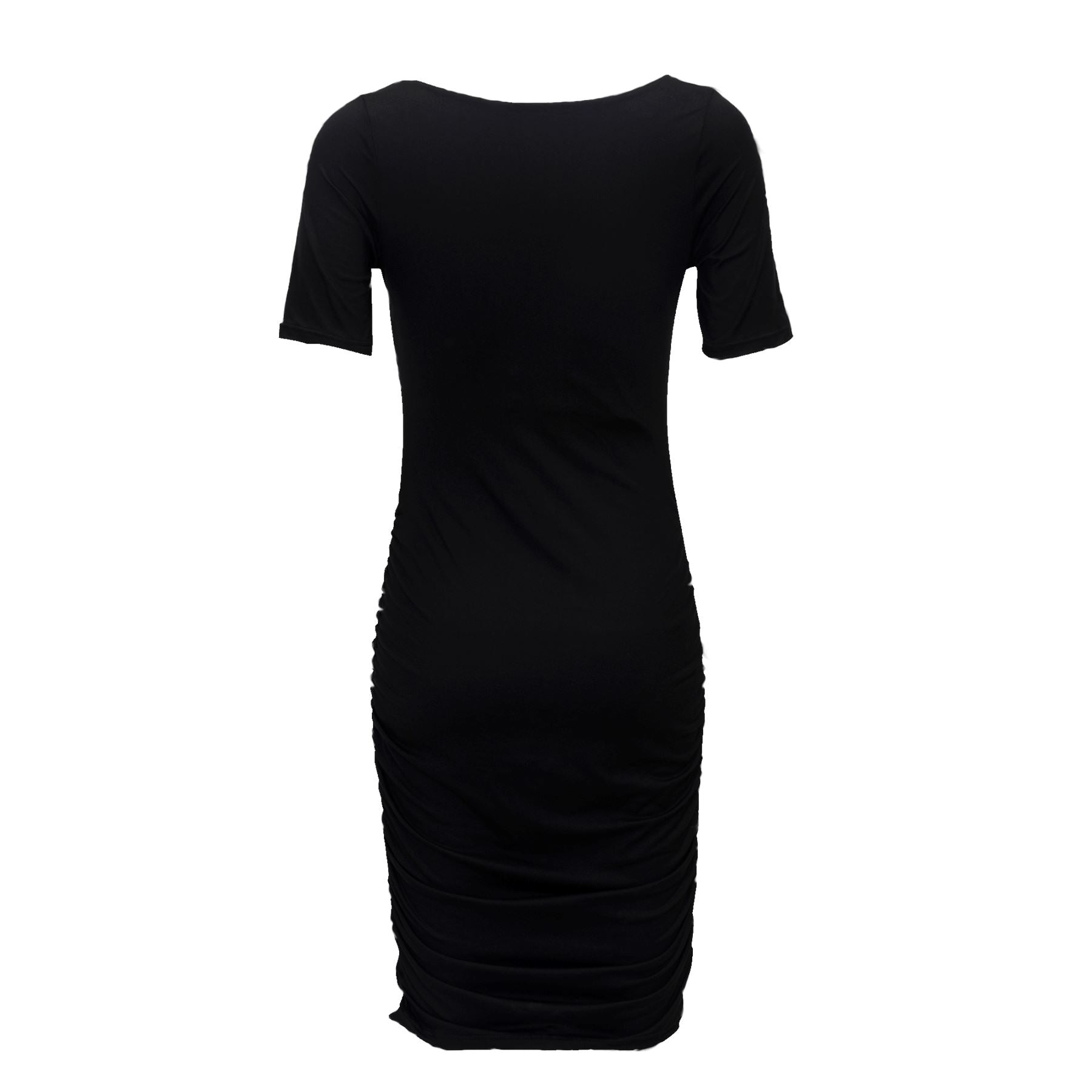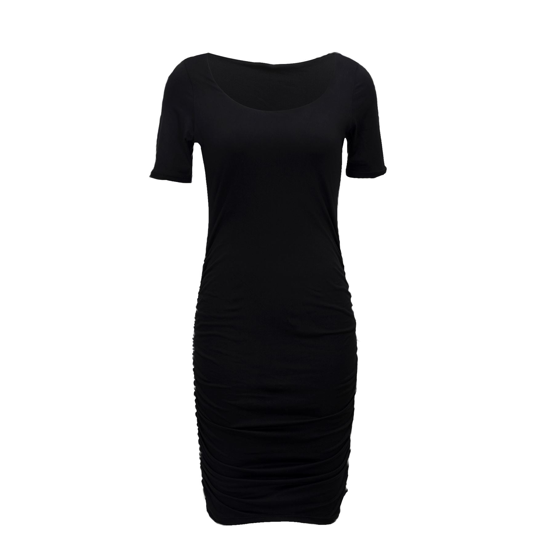 Sort kjole fra Liberte med rynkeeffekt i siderne. Kjolen har korte ærmer og en rund halsudskæring, der giver et enkelt og rent udtryk.