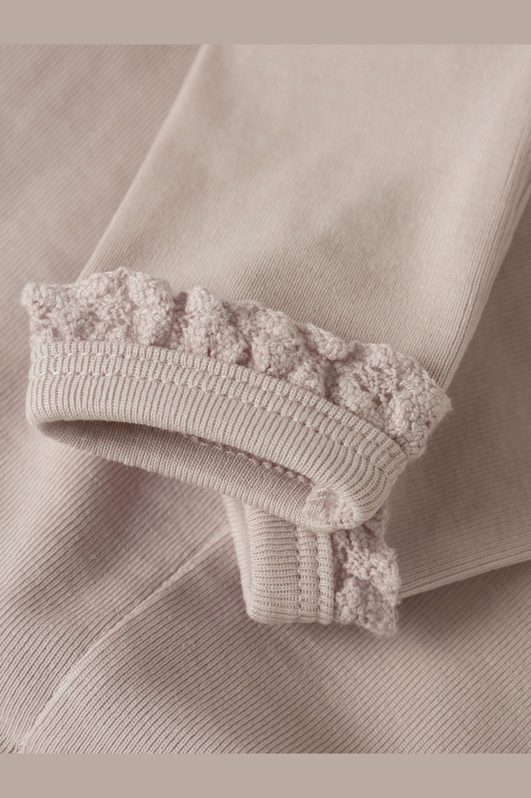 Lyserøde leggings fra Lil' Atelier med dekorative blondekanter ved anklerne. Leggingsene har en slim fit-pasform og en elastisk talje.