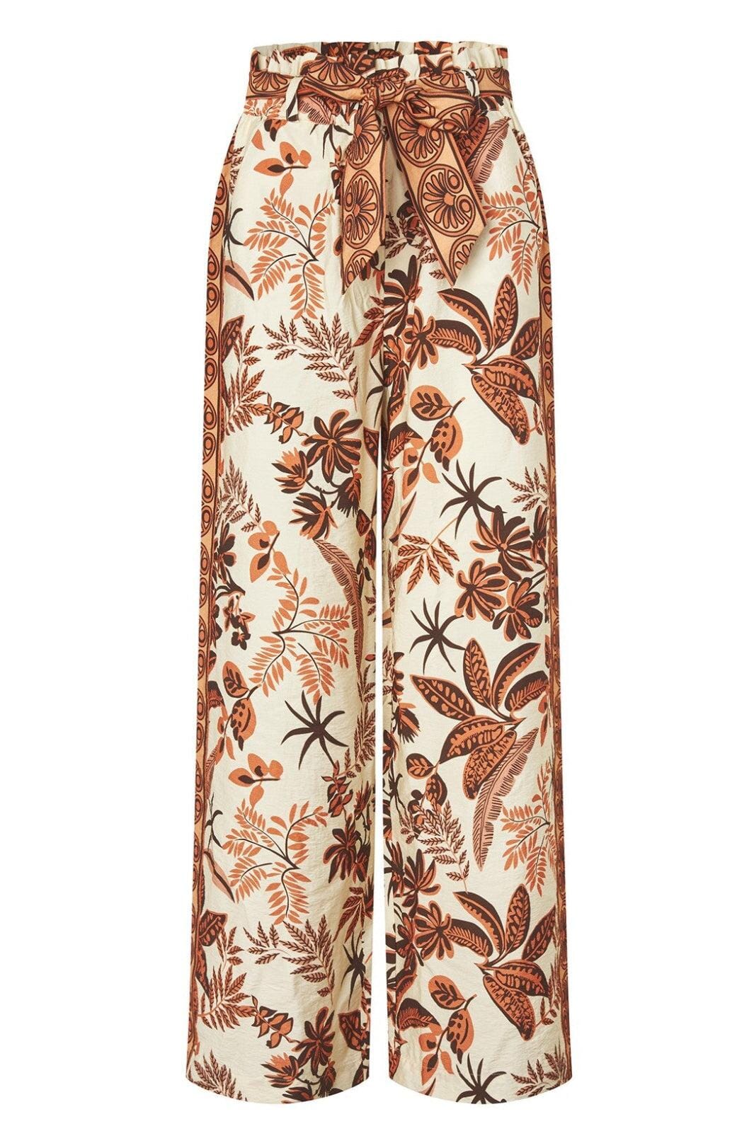 Cremefarvede bukser fra Lollys Laundry med et miks af blomster, paisley og prikker. Bukserne har et let og luftigt design med et dekorativt mønster på en lys baggrund.