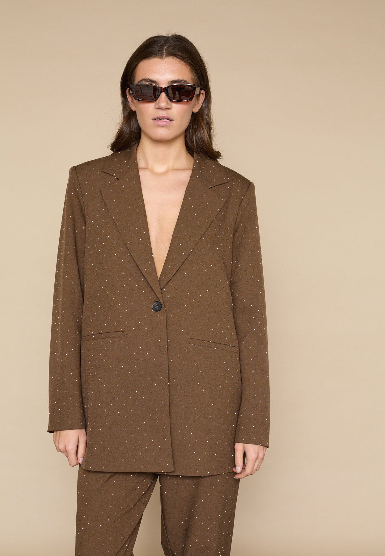 Blazer fra Love & Divine i brun farve med små rhinsten-detaljer. Jakken har et klassisk snit med revers og enkelt knaplukning.