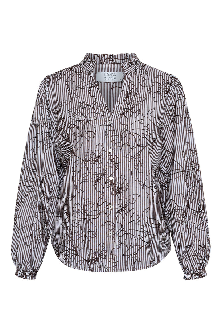 Skjorte fra Love & Divine med sort-hvidt zebramønster. Den løse pasform og v-halsudskæring giver en afslappet stil, mens de korte ærmer og knaplukningen tilføjer praktiske detaljer.