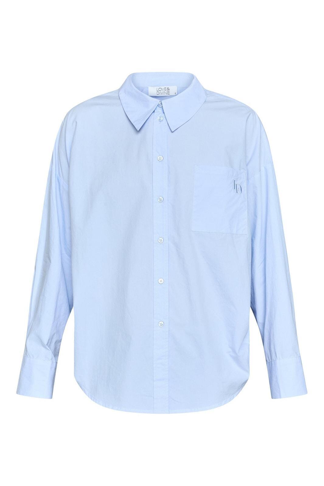 Lyseblå skjorte fra Love & Divine, lavet af 100 % bomuld. Skjorten har en klassisk krave og knaplukning.