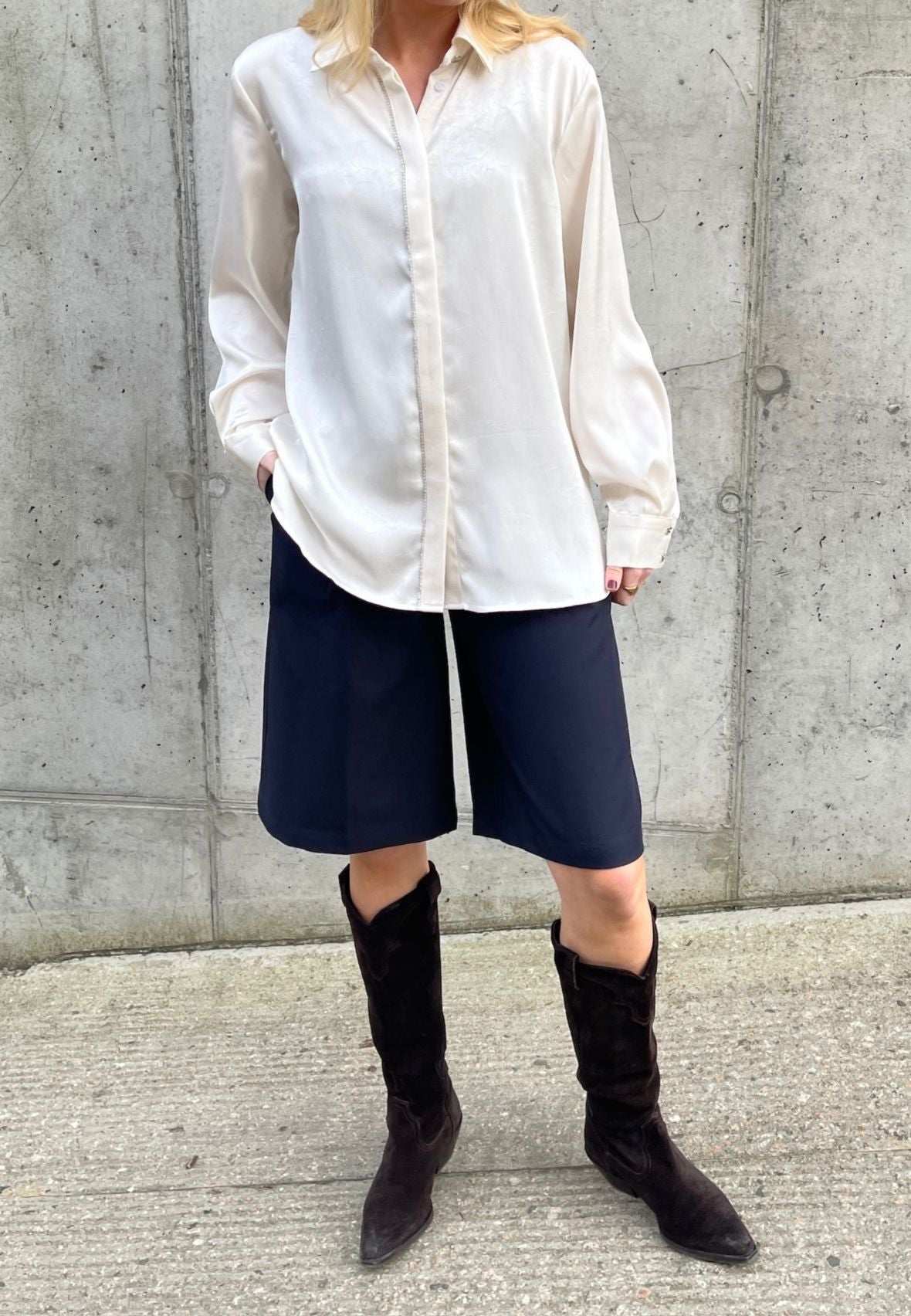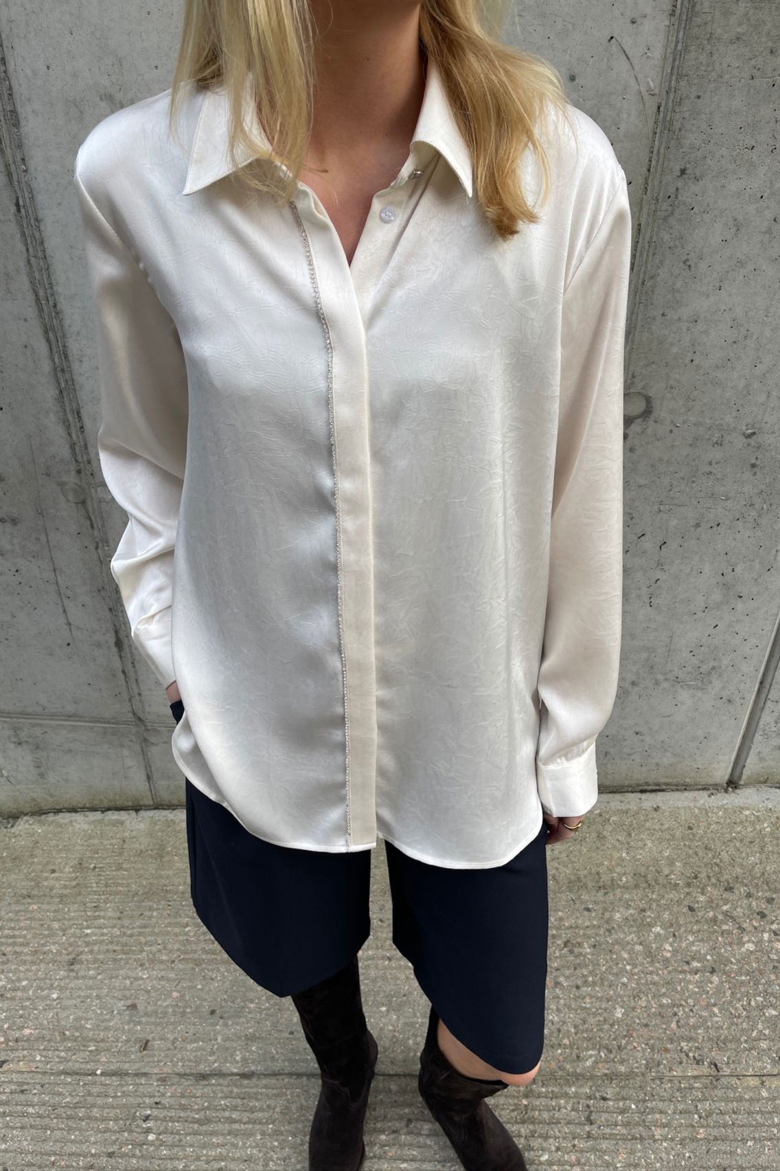 Cremefarvet skjorte fra Love & Divine med klassisk krave og lange ærmer. Skjorten har pailletter langs knaplukningen og manchetter med knapper.