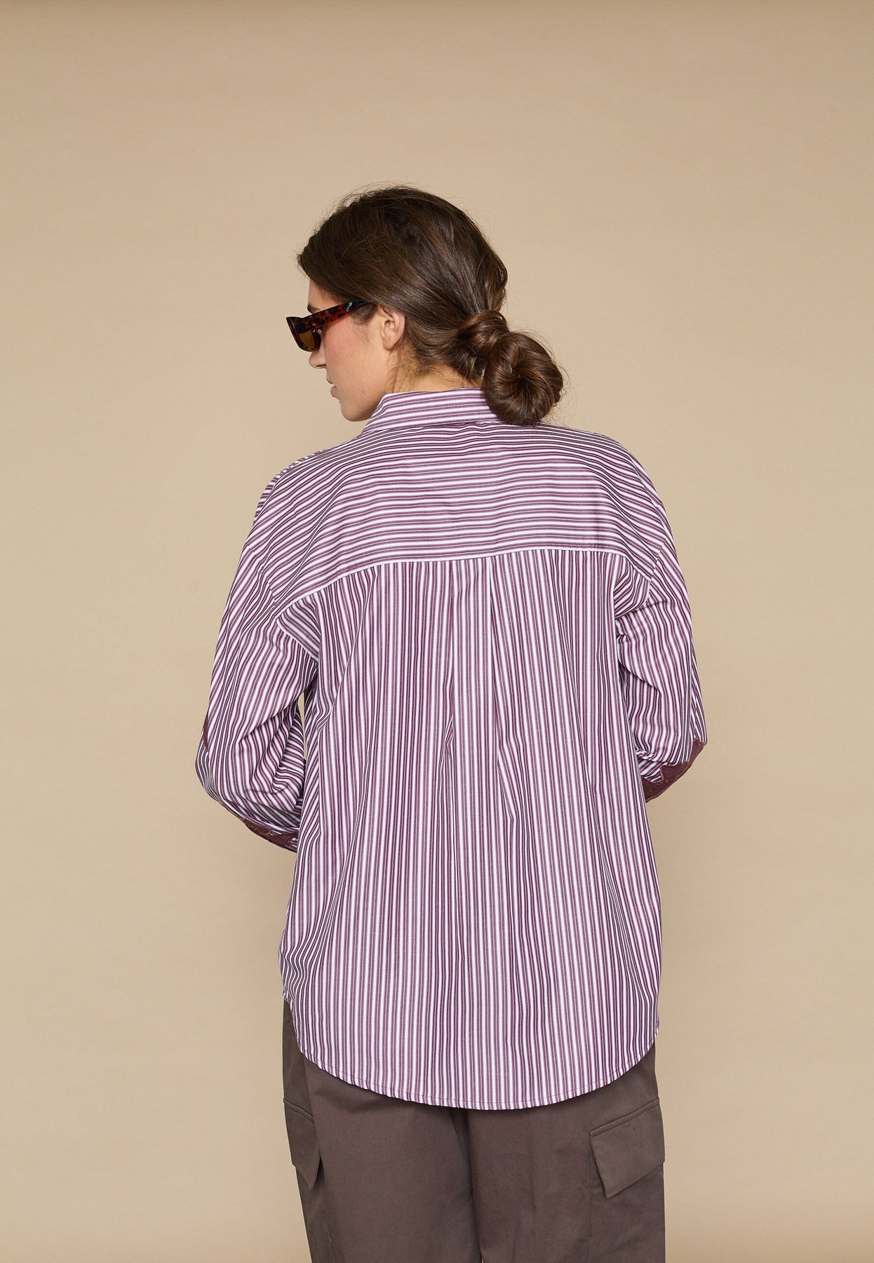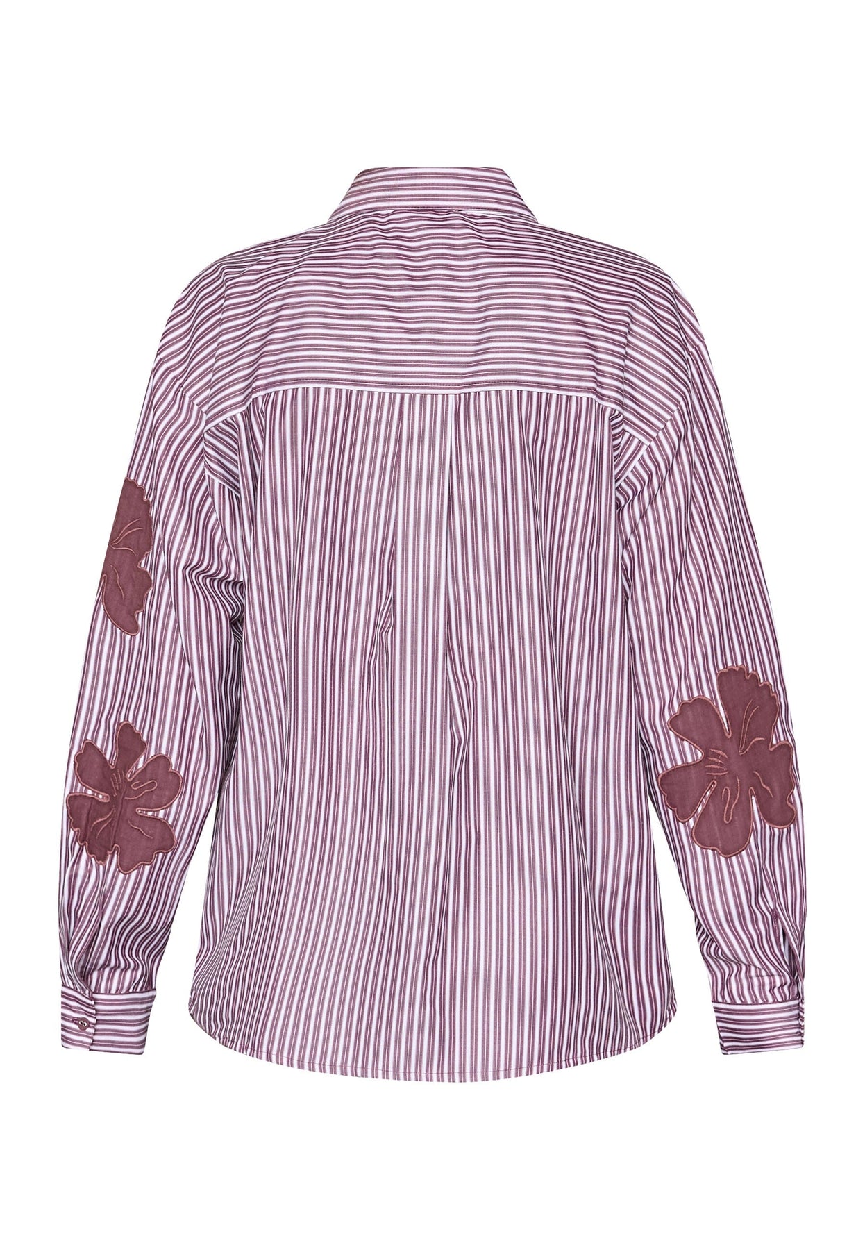 Stribet skjorte fra Love & Divine med store blomsterapplikationer i bordeaux. Skjorten har klassisk krave og knaplukning.