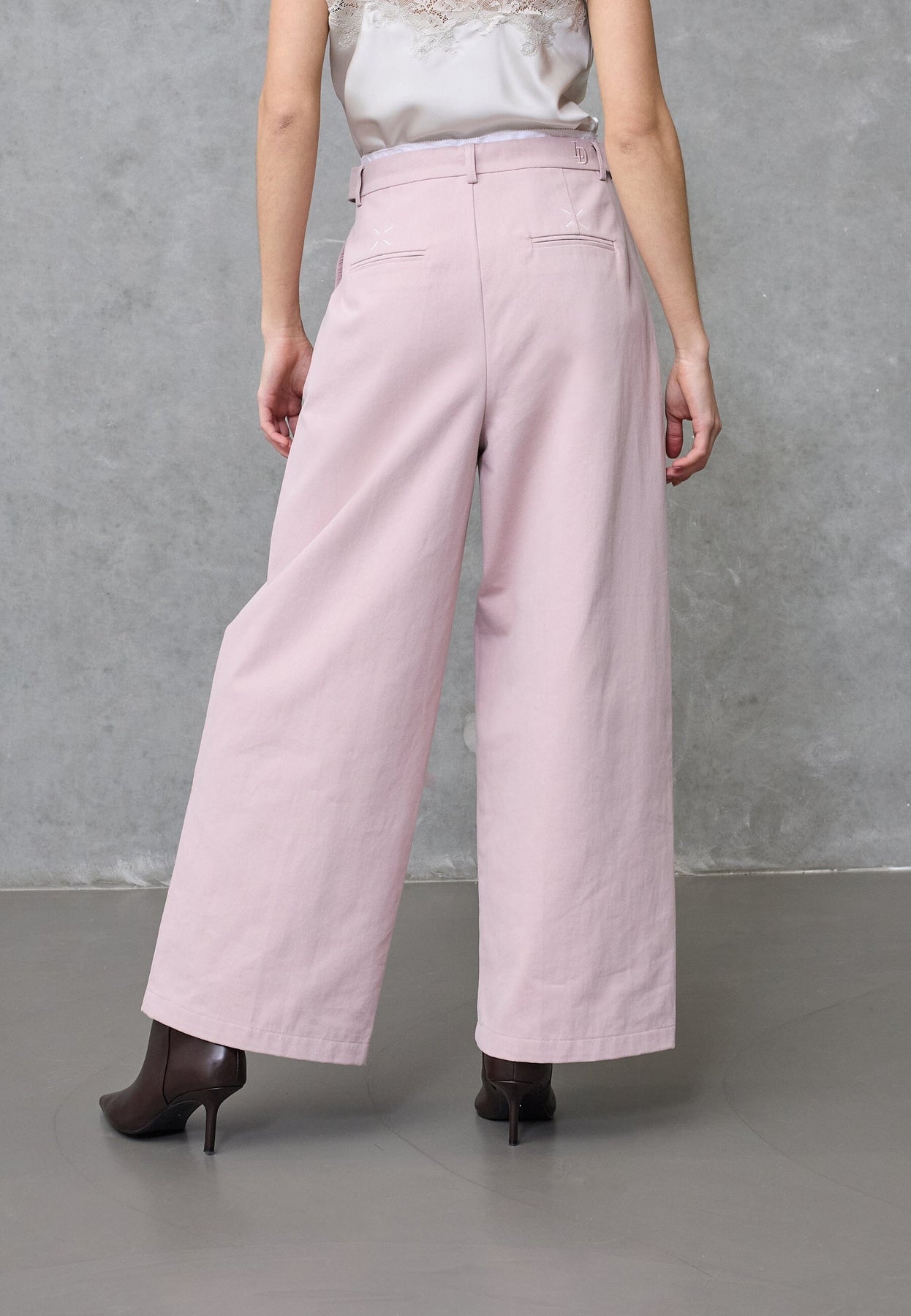Lilla bukser fra Love & Divine, lavet af 100 % bomuld. Bukserne har brede ben, høj talje og en løs pasform med broderi og snøredetaljer.