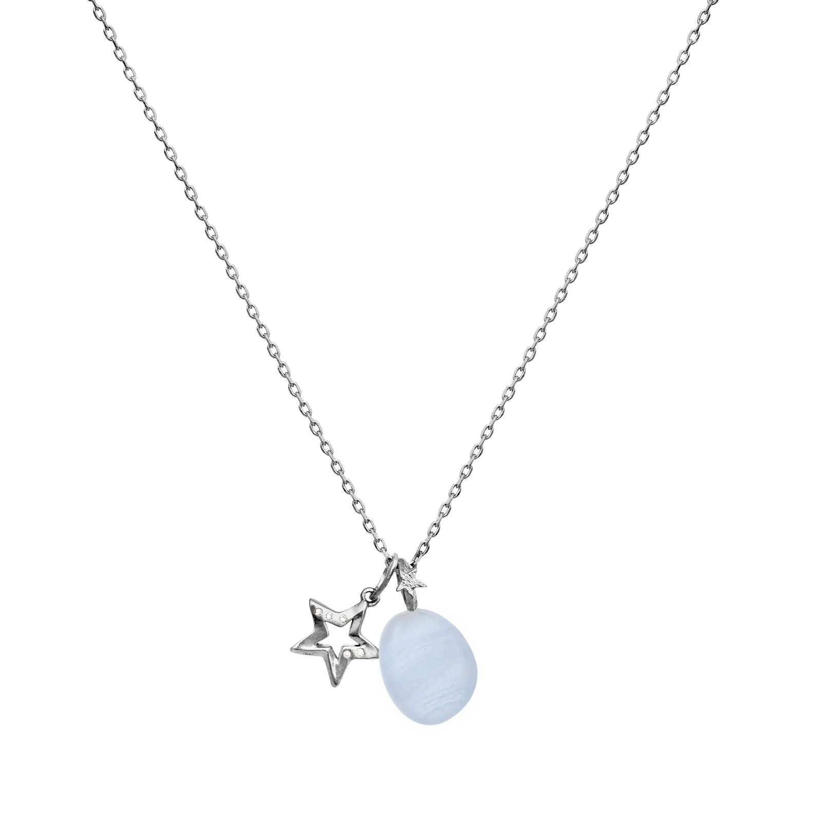 Vedhæng fra Maanesten med en lys blå sten og en stjerneformet detalje i sølv. Vedhænget er lavet af genanvendt sterlingsølv 925.