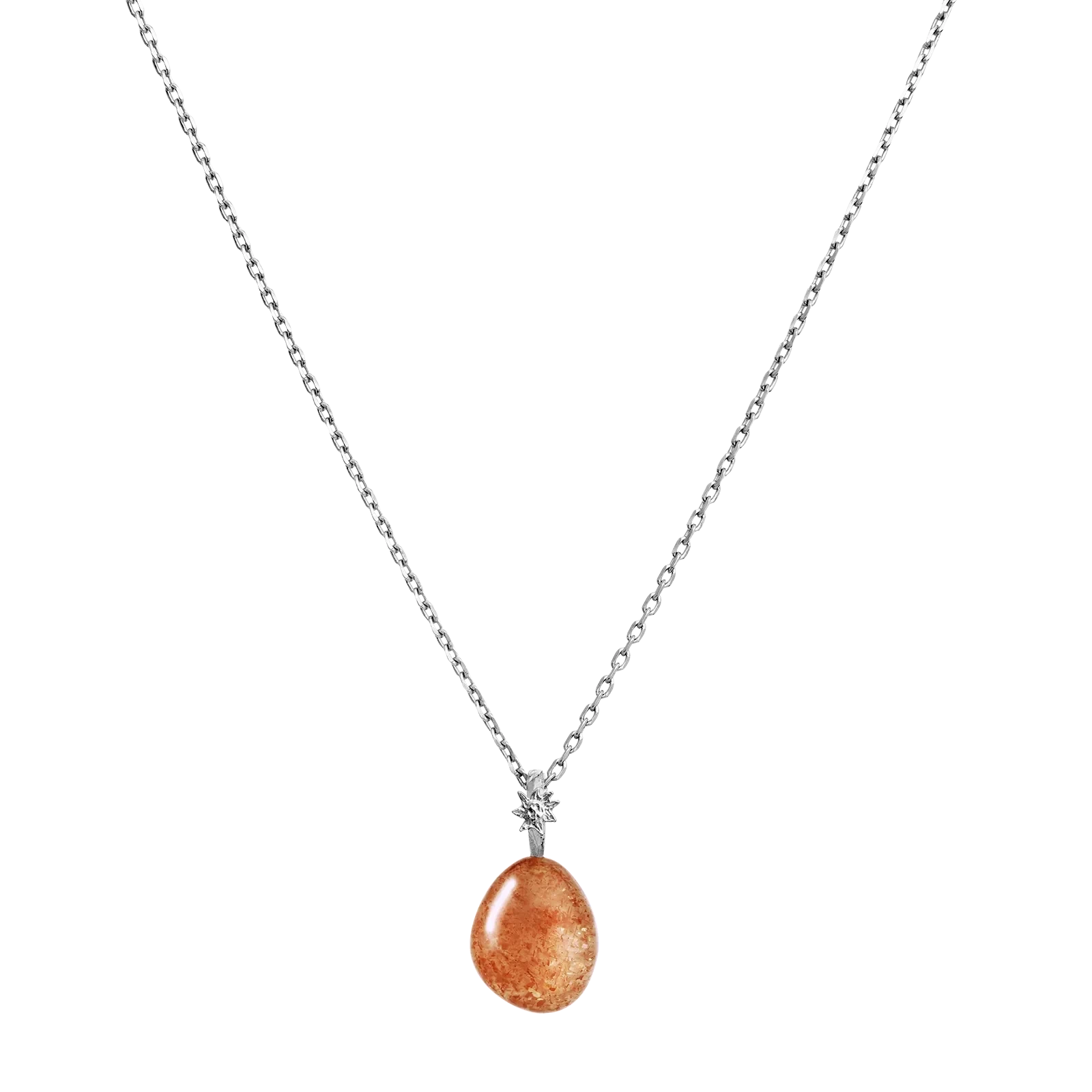Vedhæng fra Maanesten med en dråbeformet, orange sten. Vedhænget har et lille stjernedesign øverst, der forbinder stenen til kæden.