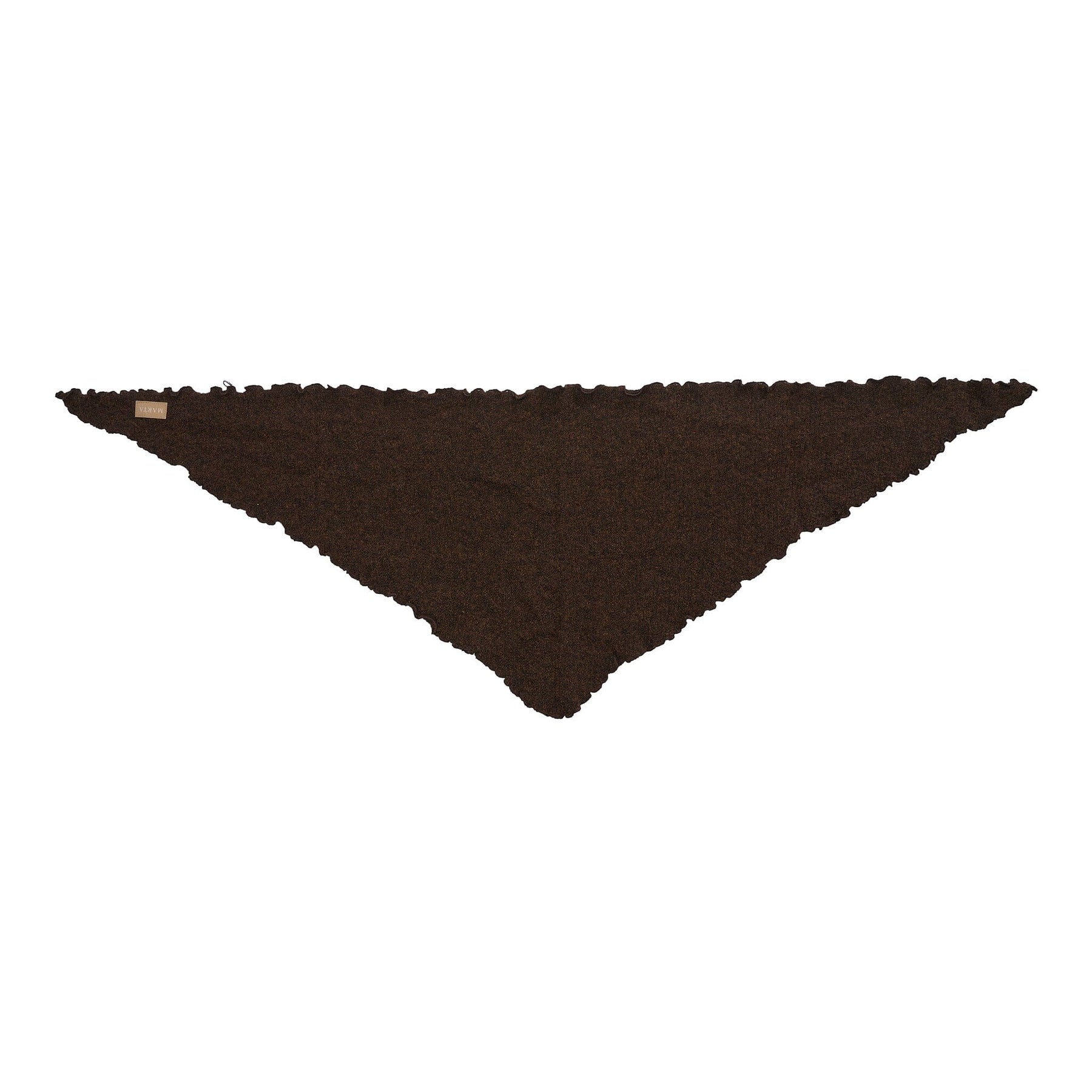 Brunt tørklæde fra Marta Du Chateau med en flæset kant og et meleret udtryk. Det guldtonede brandmærke og den bløde akryl giver tørklædet et gennemført look.