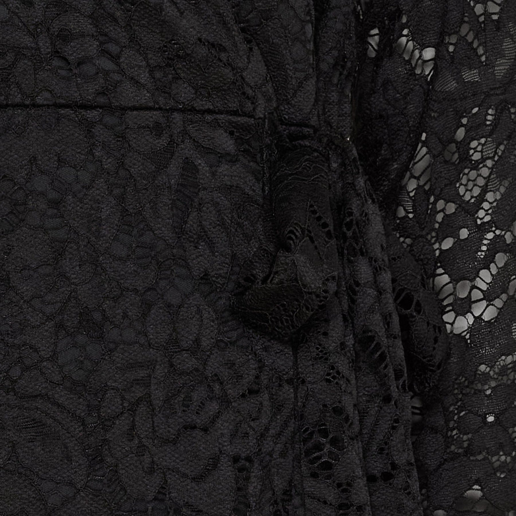 Sort knælang kjole fra Marta Du Chateau med blondedetaljer. Kjolen har en V-udskæring og bindebånd i taljen, der giver mulighed for at tilpasse pasformen.
