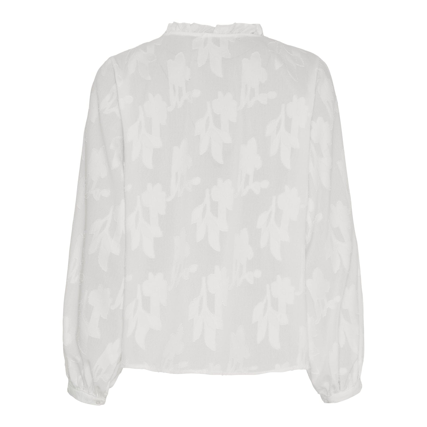 Hvid skjorte fra Marta Du Chateau med et broderet blomstermønster. Skjorten har flæsedetaljer langs fronten og er lavet som en pullover uden lukning.