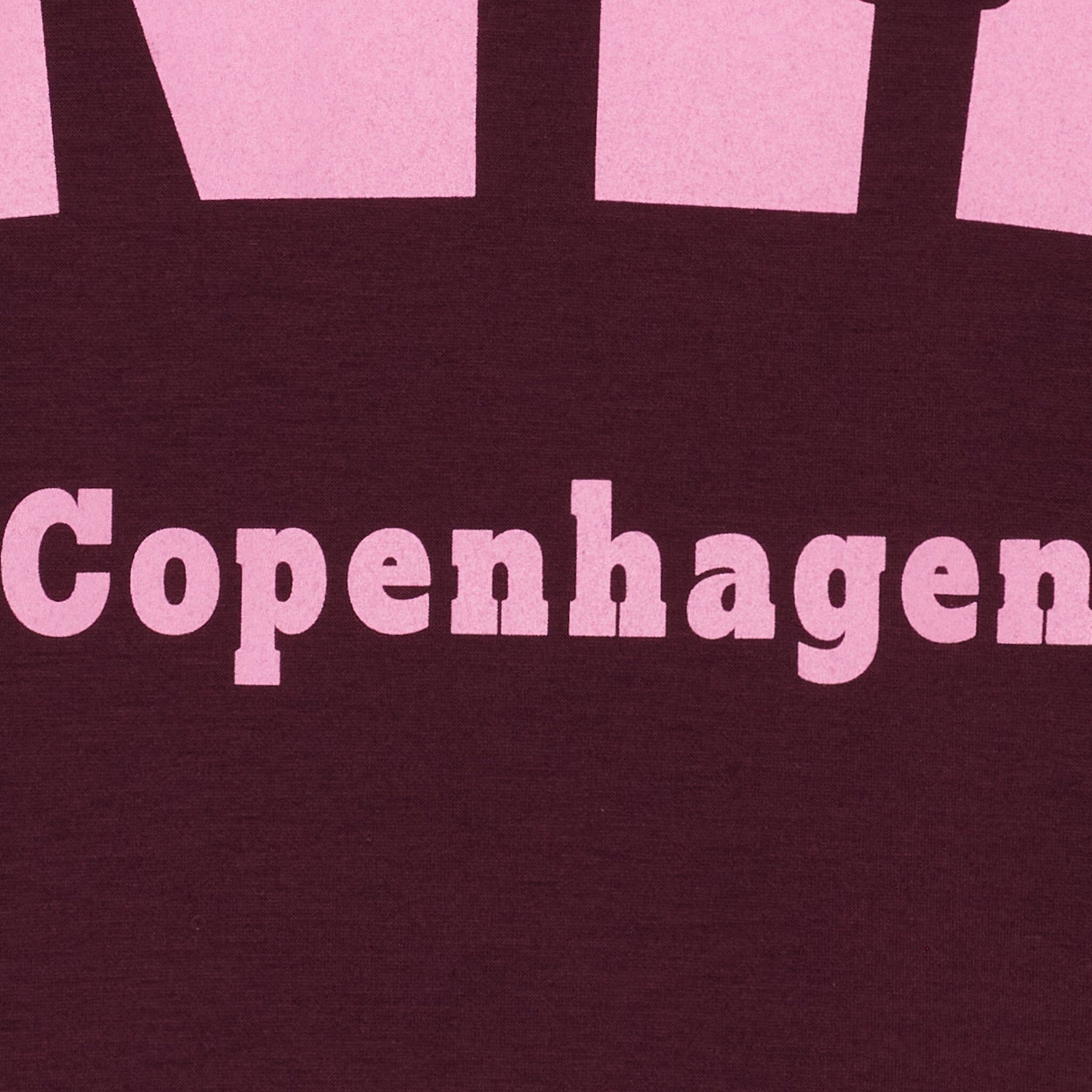 Bordeaux sweatshirt fra Marta Du Chateau med lyserøde bogstaver. Den har en oversized pasform og rund halsudskæring, der gør den velegnet til både hjemmebrug og afslappede stunder.